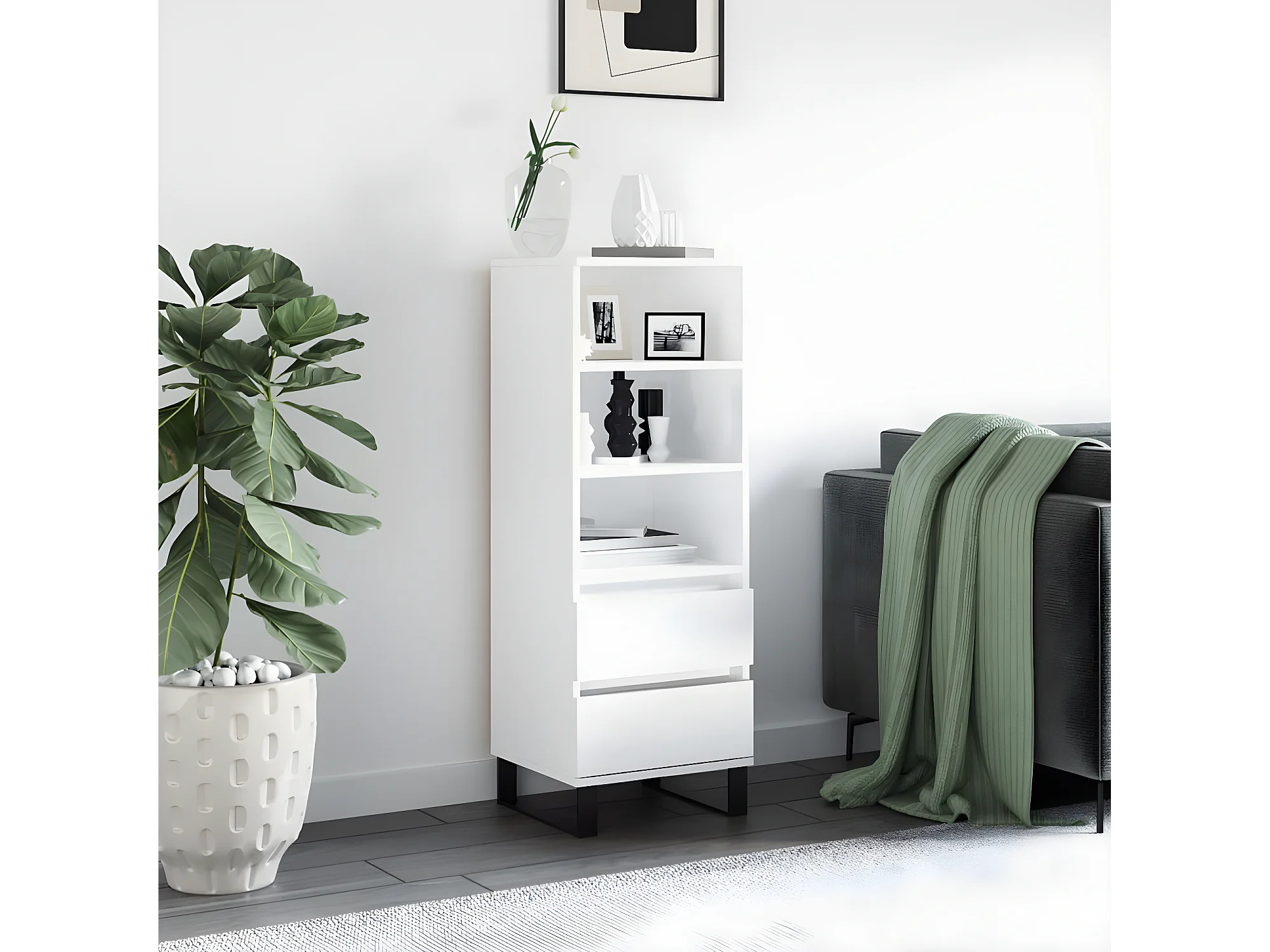 Buffet haut Blanc brillant 40x36x110 cm Bois d'ingénierie