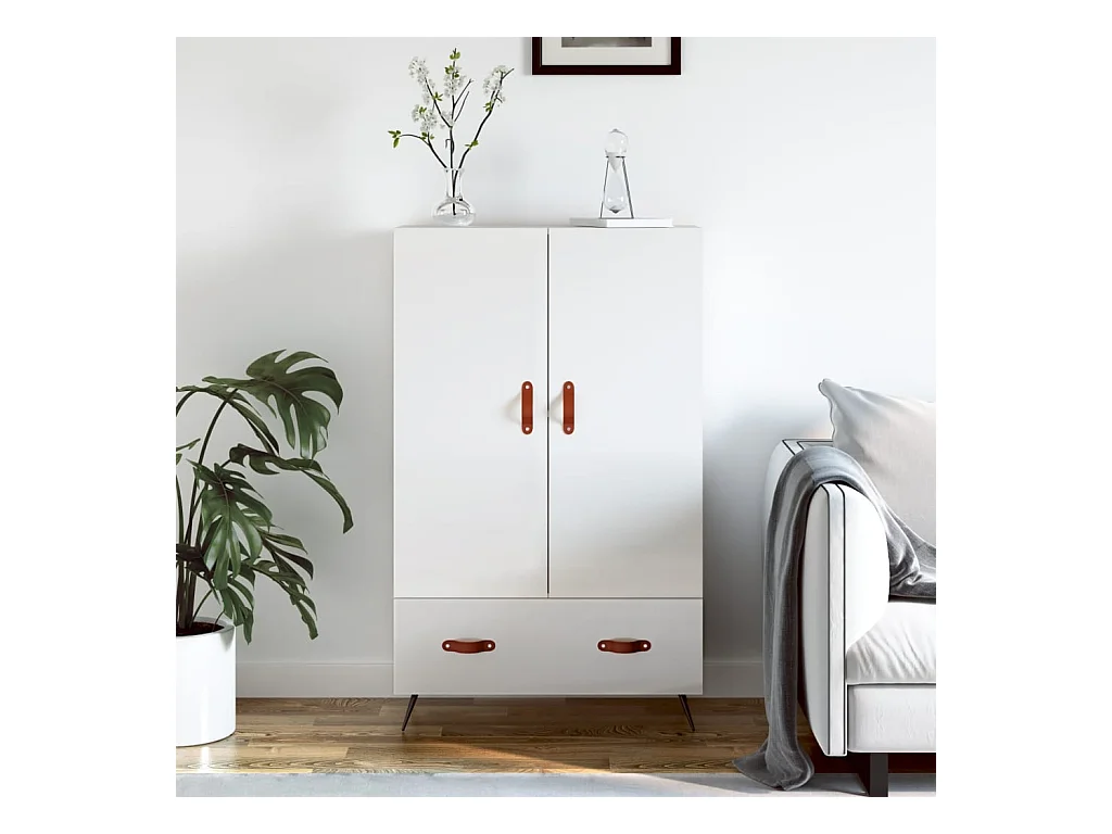 Buffet haut blanc brillant 69,5x31x115 cm bois d'ingénierie