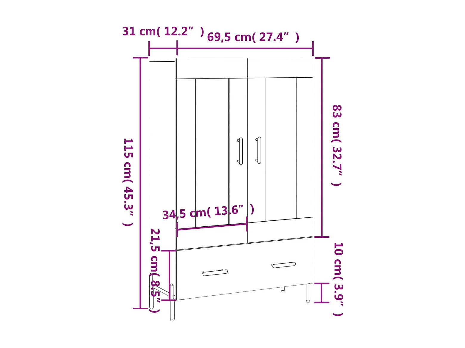 Buffet haut blanc brillant 69,5x31x115 cm bois d'ingénierie