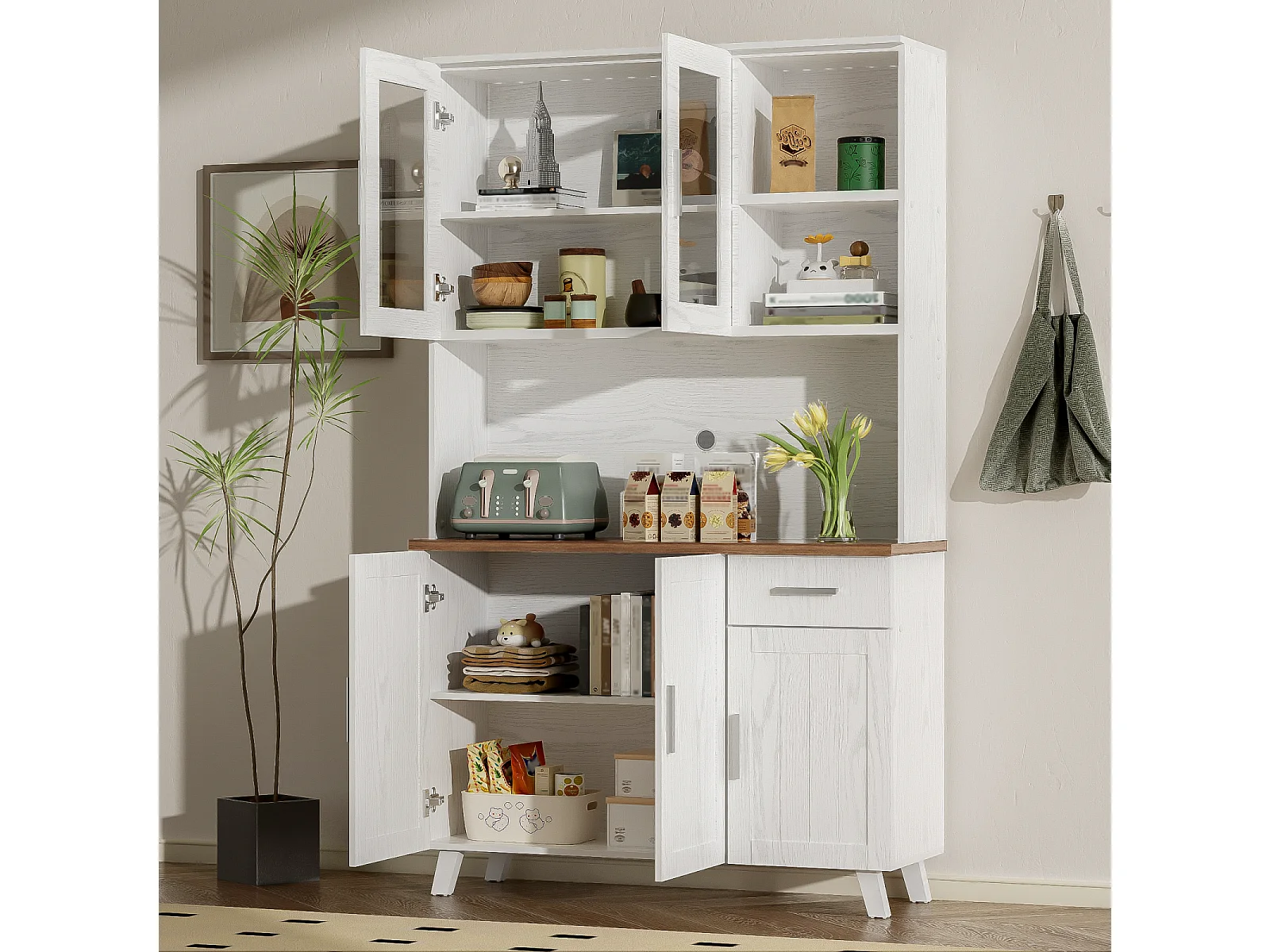 Grand buffet moderne 4 portes 2 tiroirs – 150 x 86 x 40 cm, blanc antique et bois naturel, élégant et pratique pour salle à manger et salon