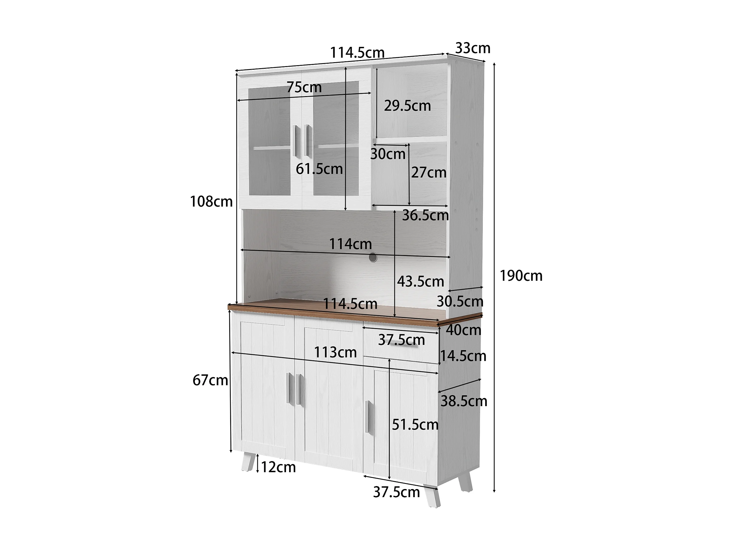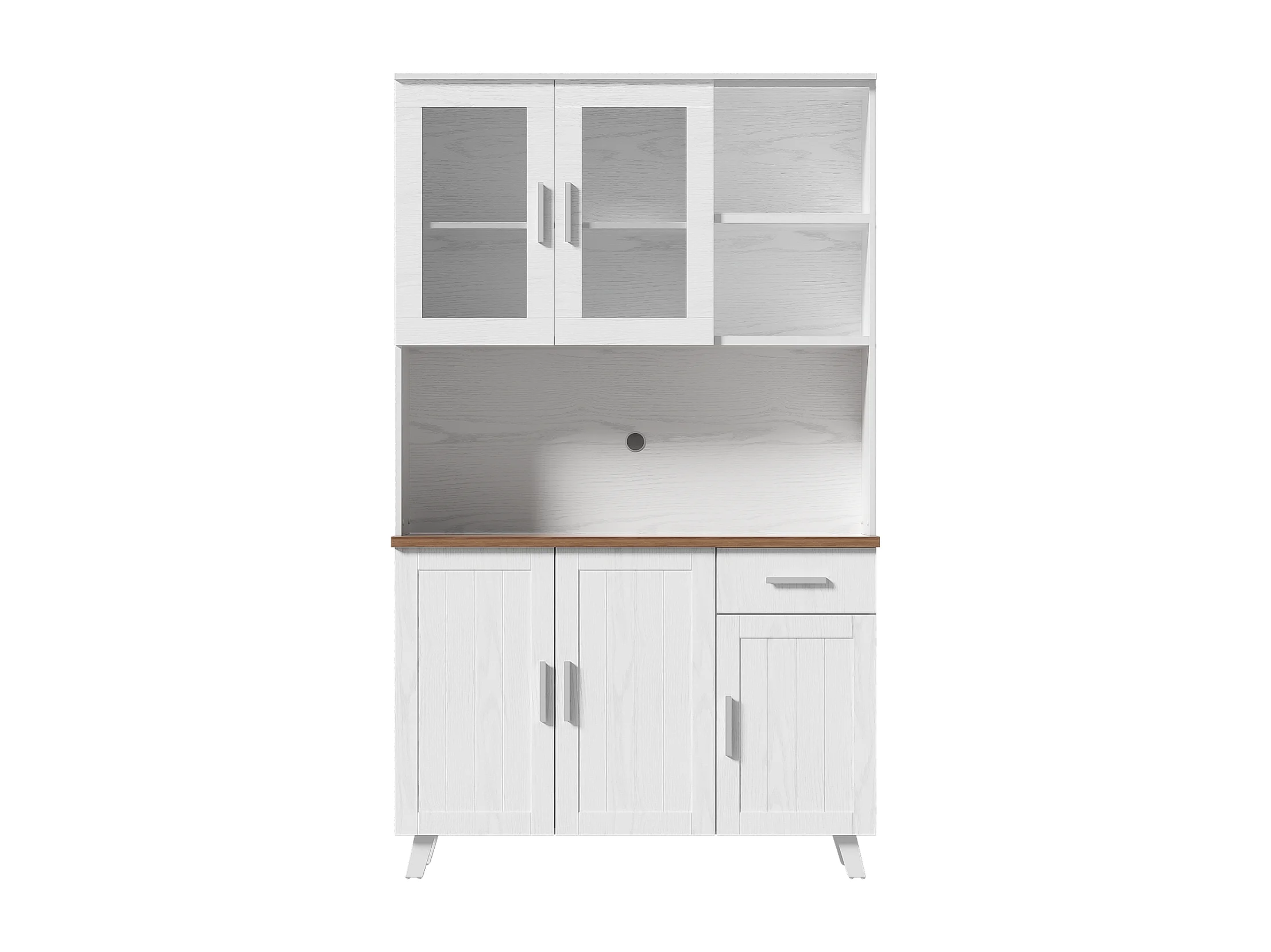 Buffet haut blanc effet bois 114x40x190 cm, grand espace de rangement, design moderne et épuré, idéal salon et salle à manger