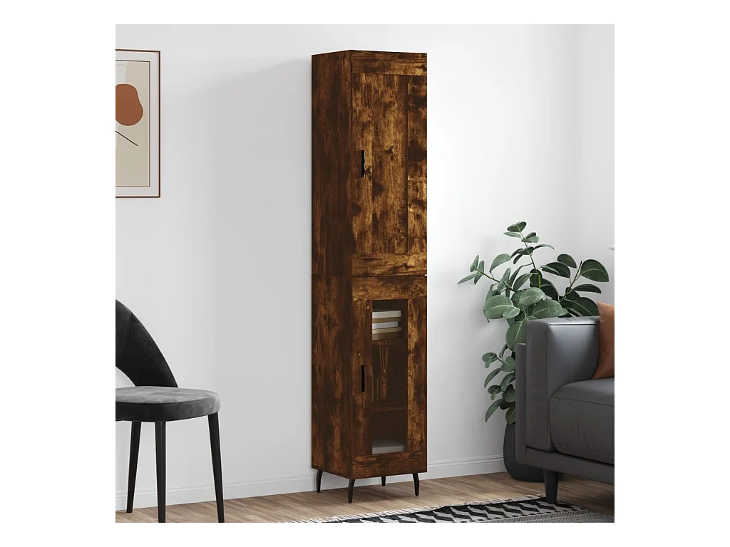 Buffet haut Chêne fumé 34,5x34x180 cm Bois d'ingénierie