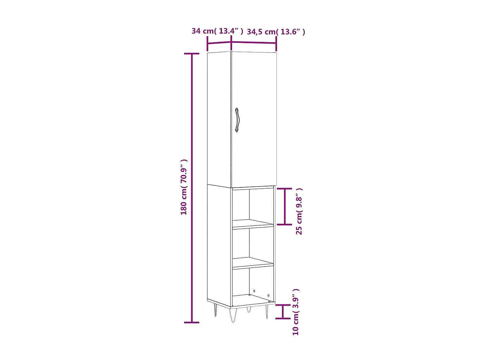 Buffet haut Chêne sonoma 34,5x34x180 cm Bois d'ingénierie