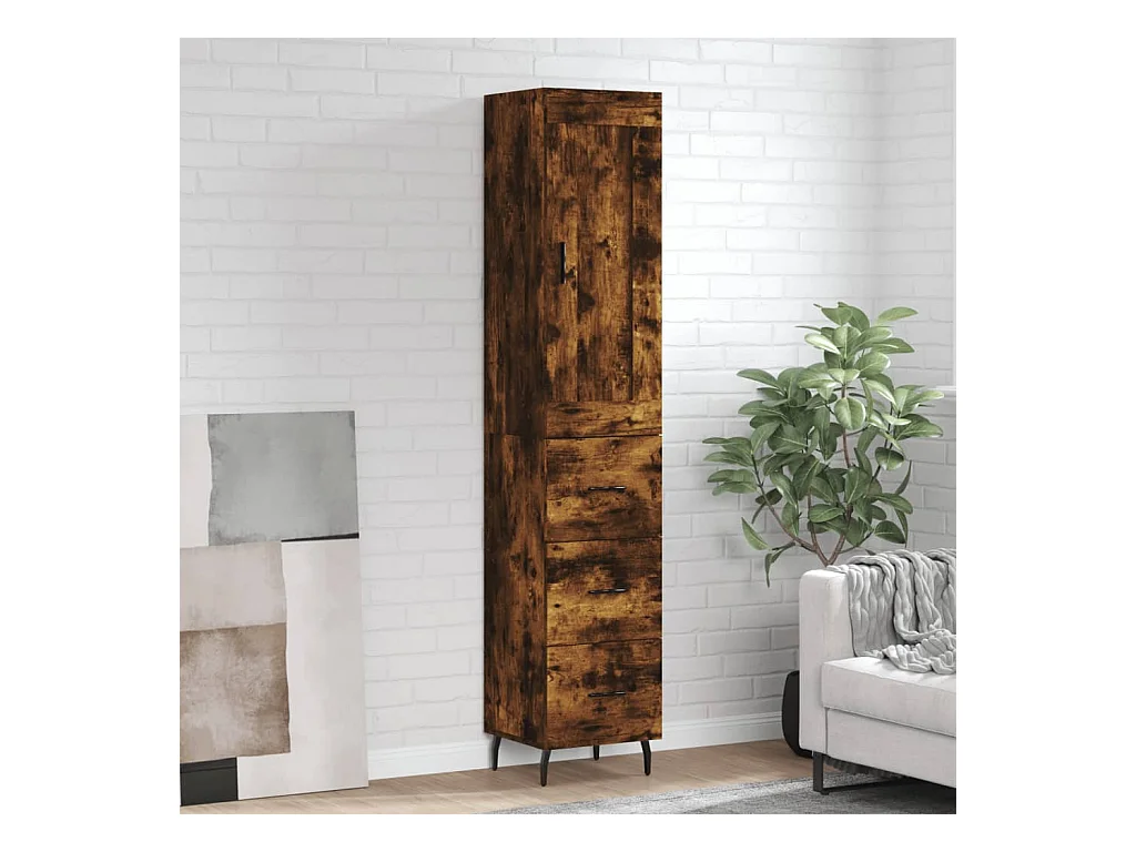 Buffet haut Chêne fumé 34,5x34x180 cm Bois d'ingénierie WOS7850