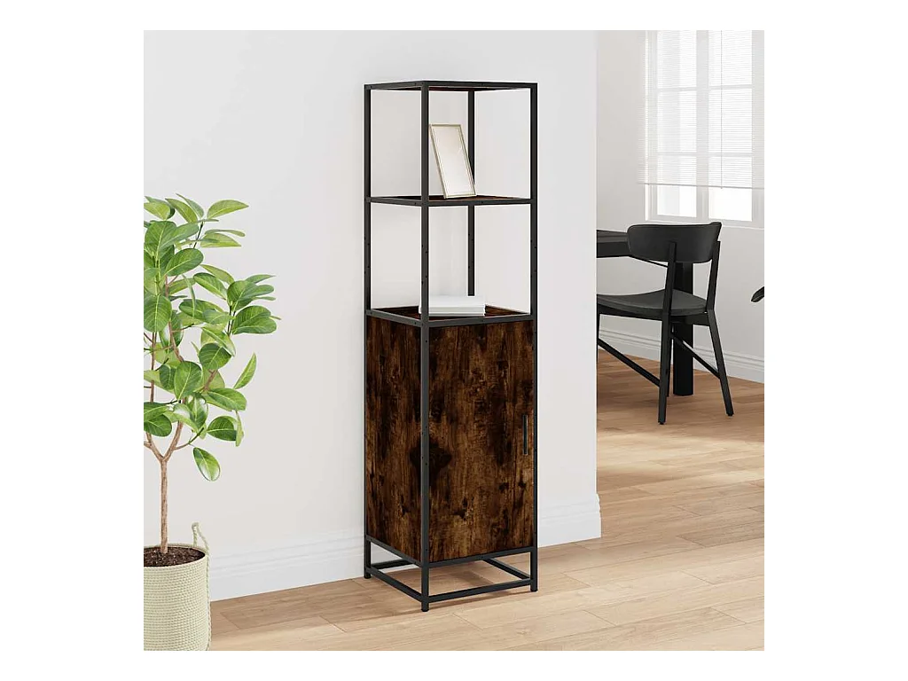 Buffet haut chêne fumé 35,5x35x139 cm bois d'ingénierie métal