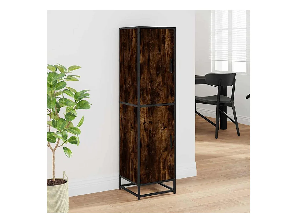 Buffet haut chêne fumé 35,5x35x139 cm bois d'ingénierie métal