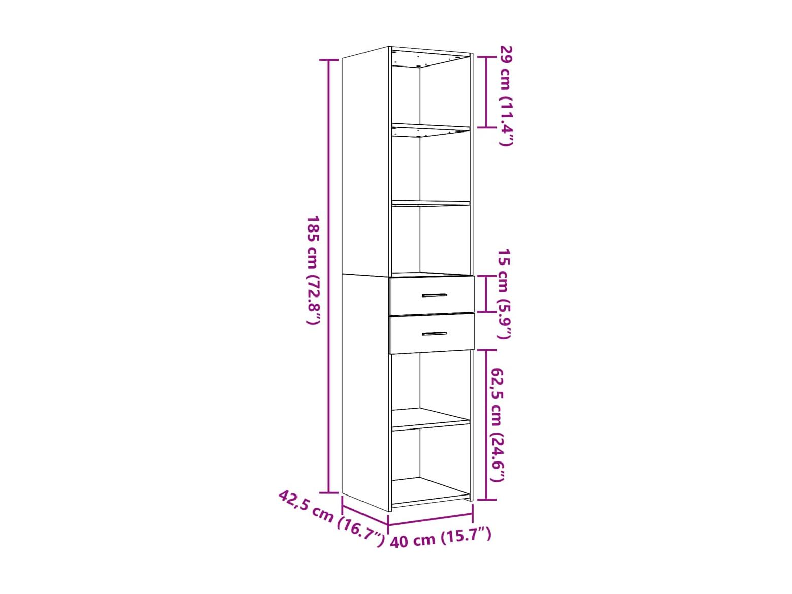 Buffet haut chêne sonoma 40x42,5x185 cm bois d'ingénierie