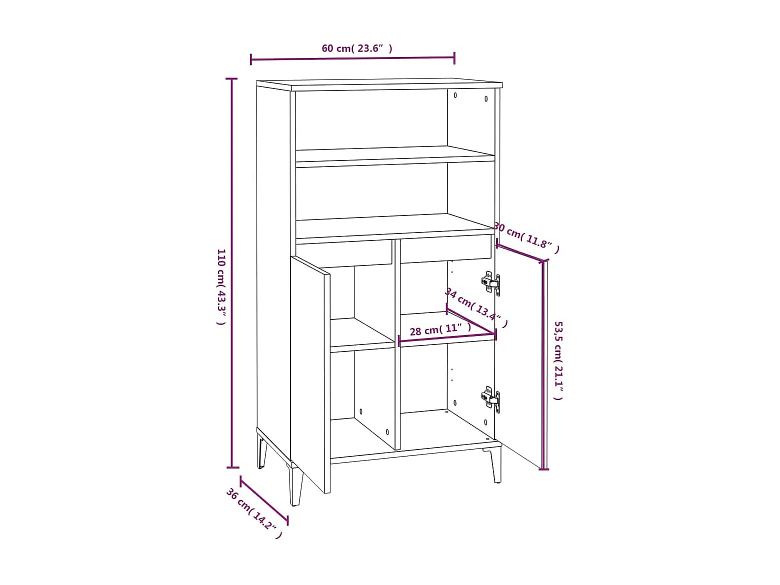 Buffet haut Chêne sonoma 60x36x110 cm Bois d'ingénierie