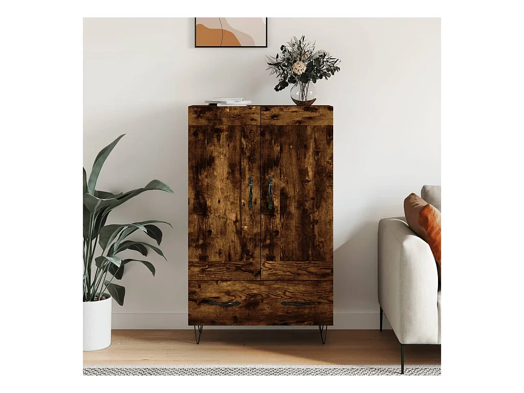 Buffet haut chêne fumé 69,5x31x115 cm bois d'ingénierie QWE85964