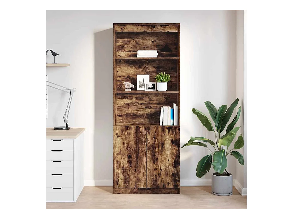 Buffet haut chêne fumé 70x35x180 cm bois d'ingénierie