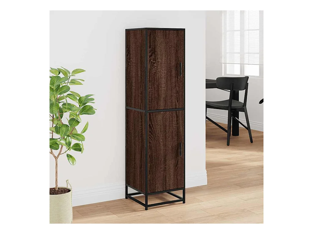 Buffet haut chêne marron 35,5x35x139 cm bois d'ingénierie métal