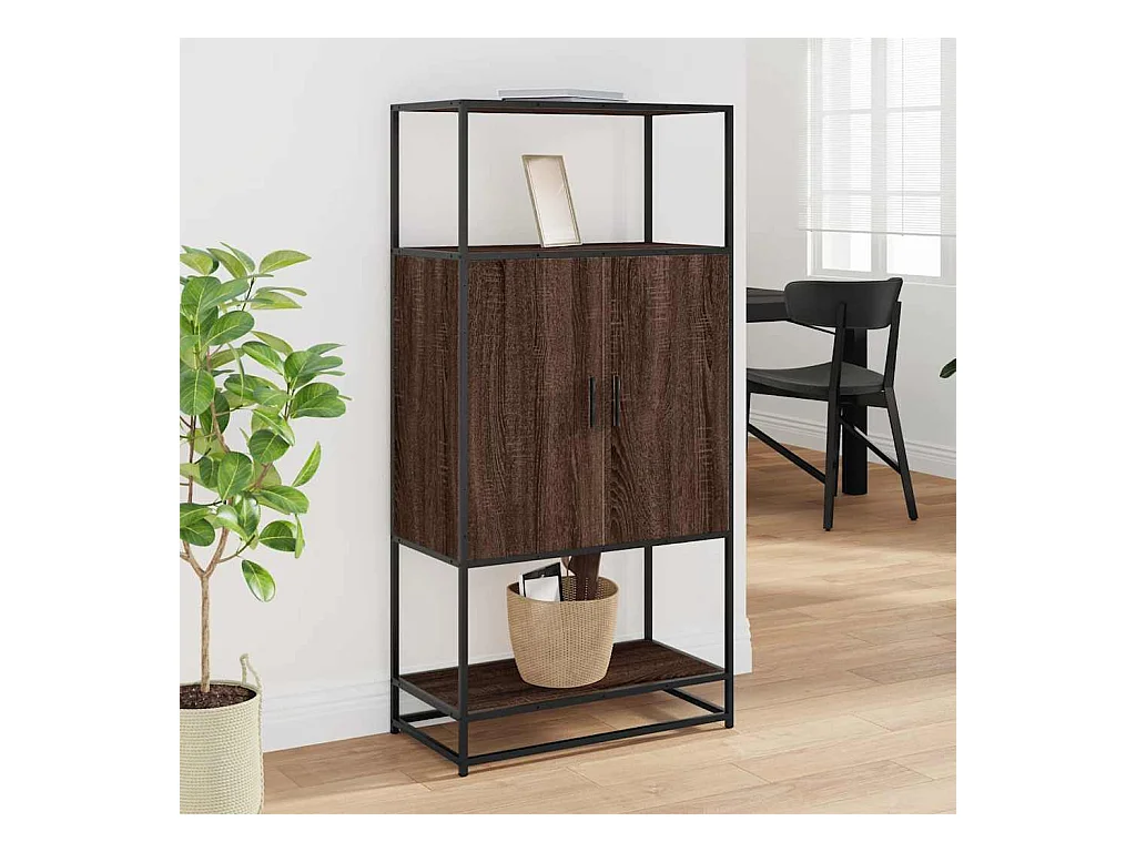 Buffet haut chêne marron 68x35x139 cm bois d'ingénierie métal