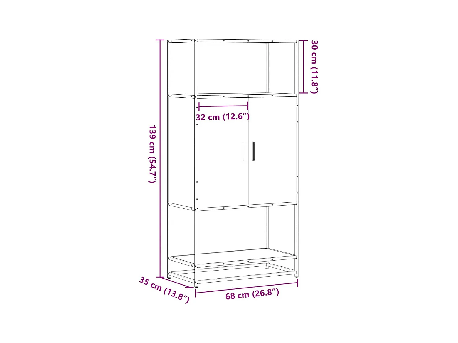 Buffet haut chêne sonoma 68x35x139 cm bois d'ingénierie métal