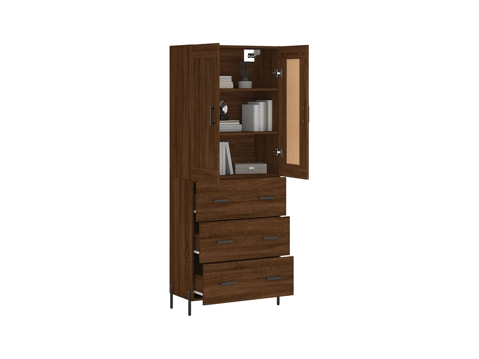 Buffet haut Chêne marron 69,5x34x180 cm Bois d'ingénierie QWE72435
