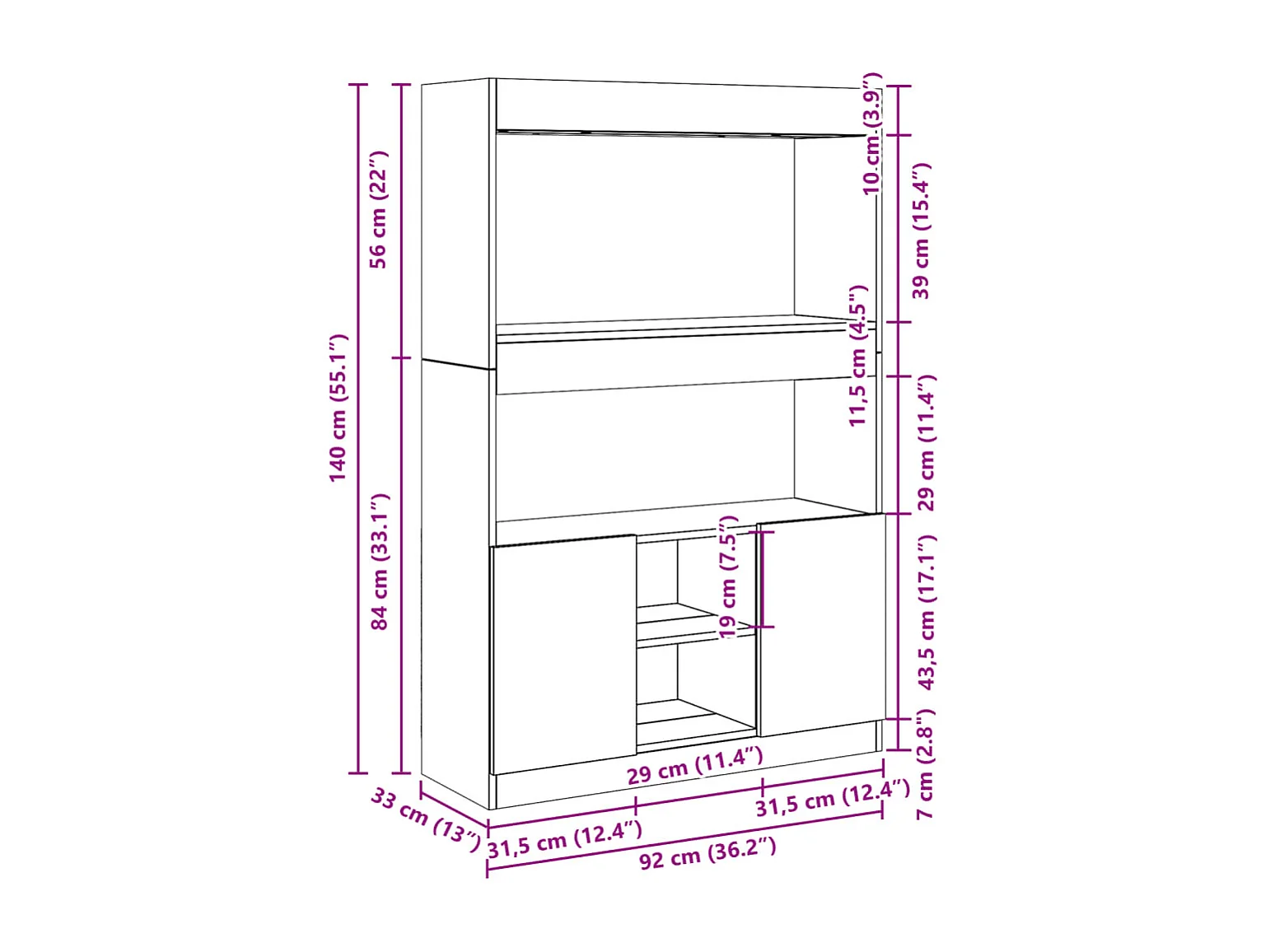 Buffet haut chêne sonoma 92x33x140 cm bois d'ingénierie