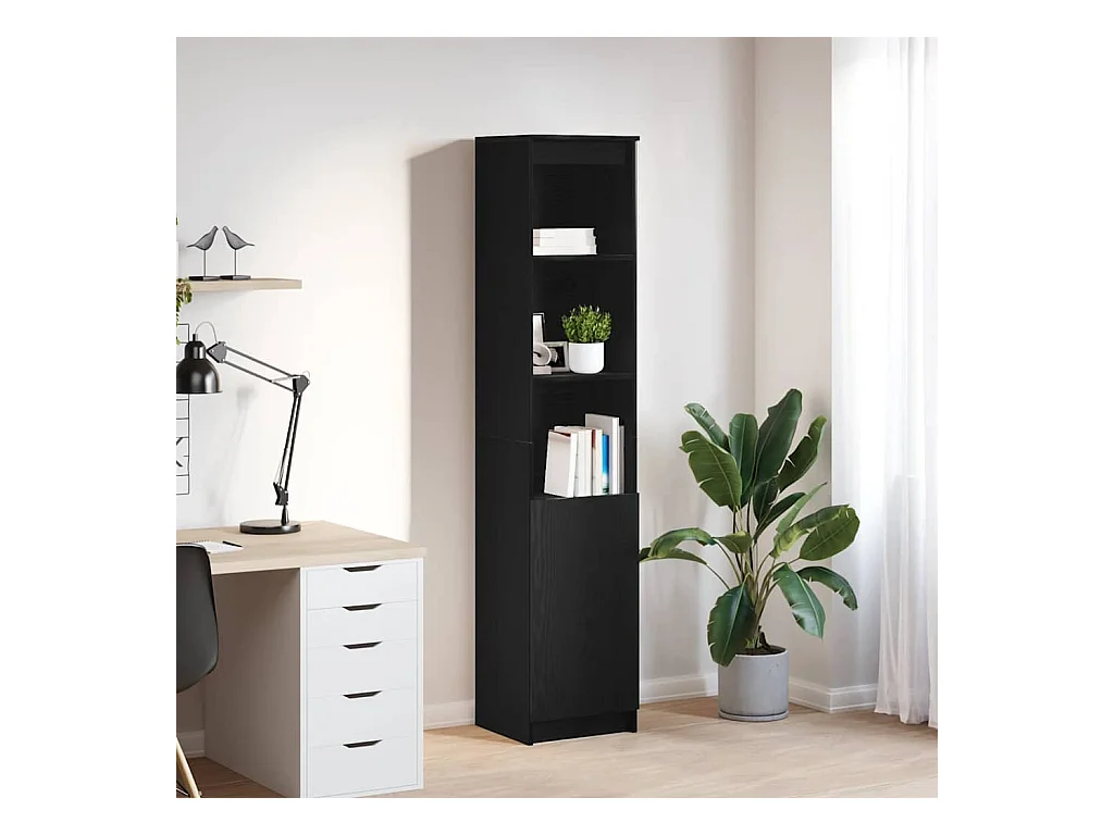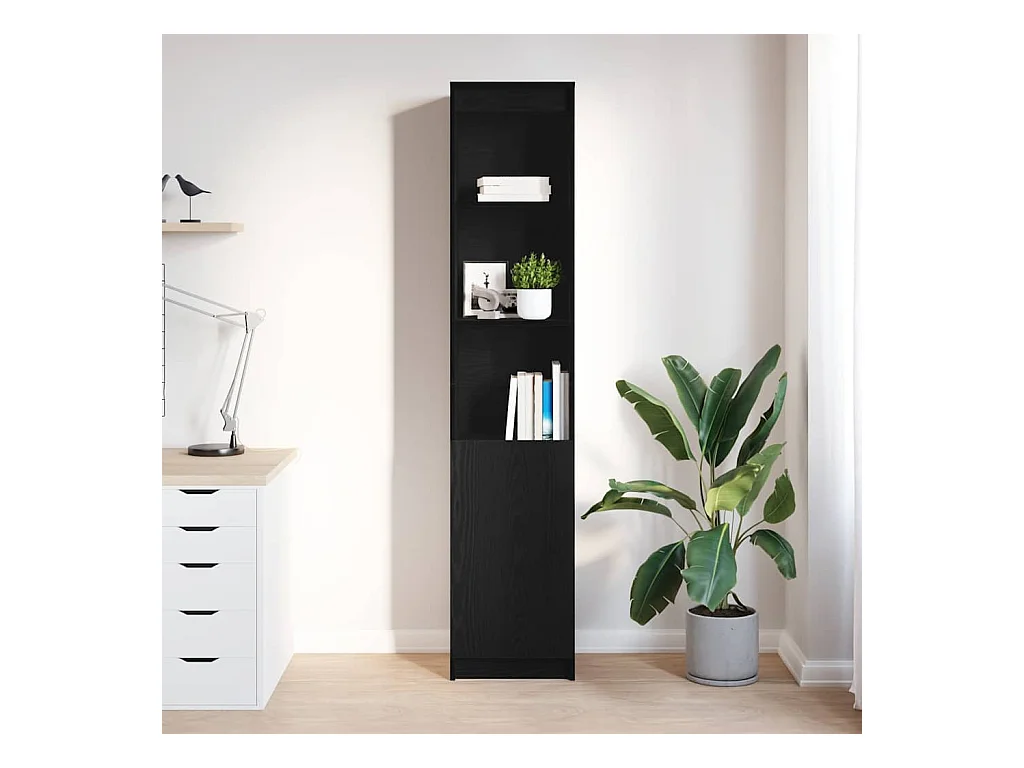 Buffet haut chêne noir 50x35x180 cm bois d'ingénierie