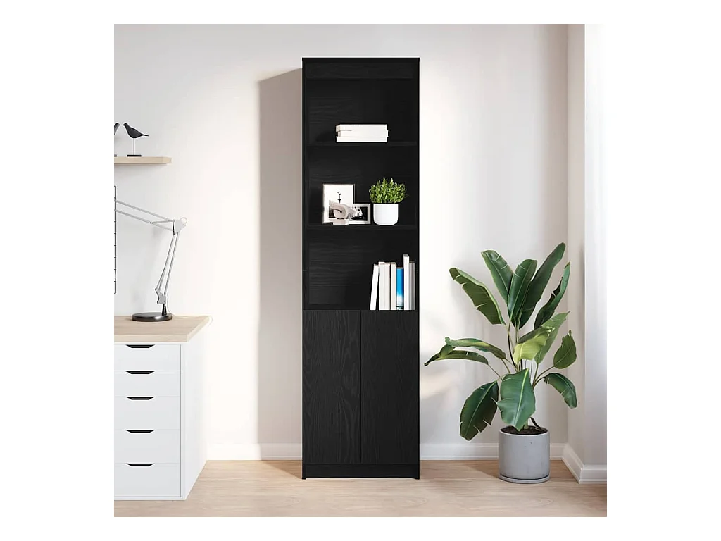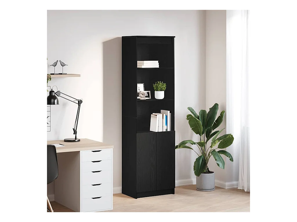 Buffet haut chêne noir 70x35x180 cm bois d'ingénierie