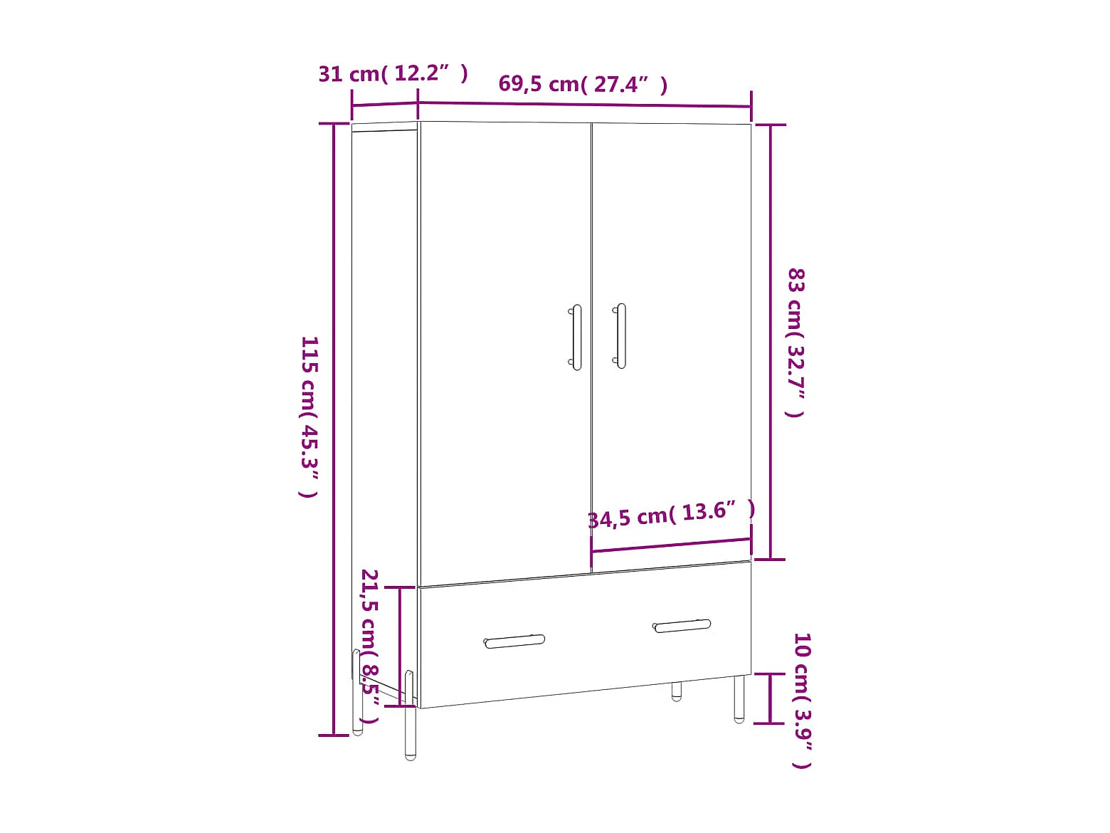 Buffet haut chêne sonoma 69,5x31x115 cm bois d'ingénierie