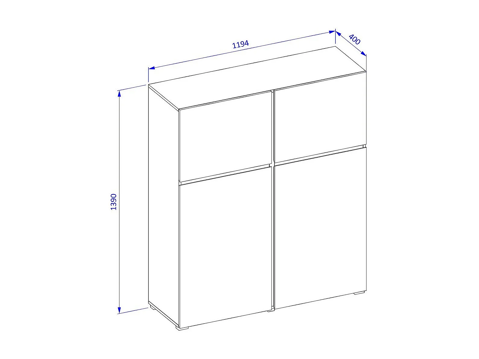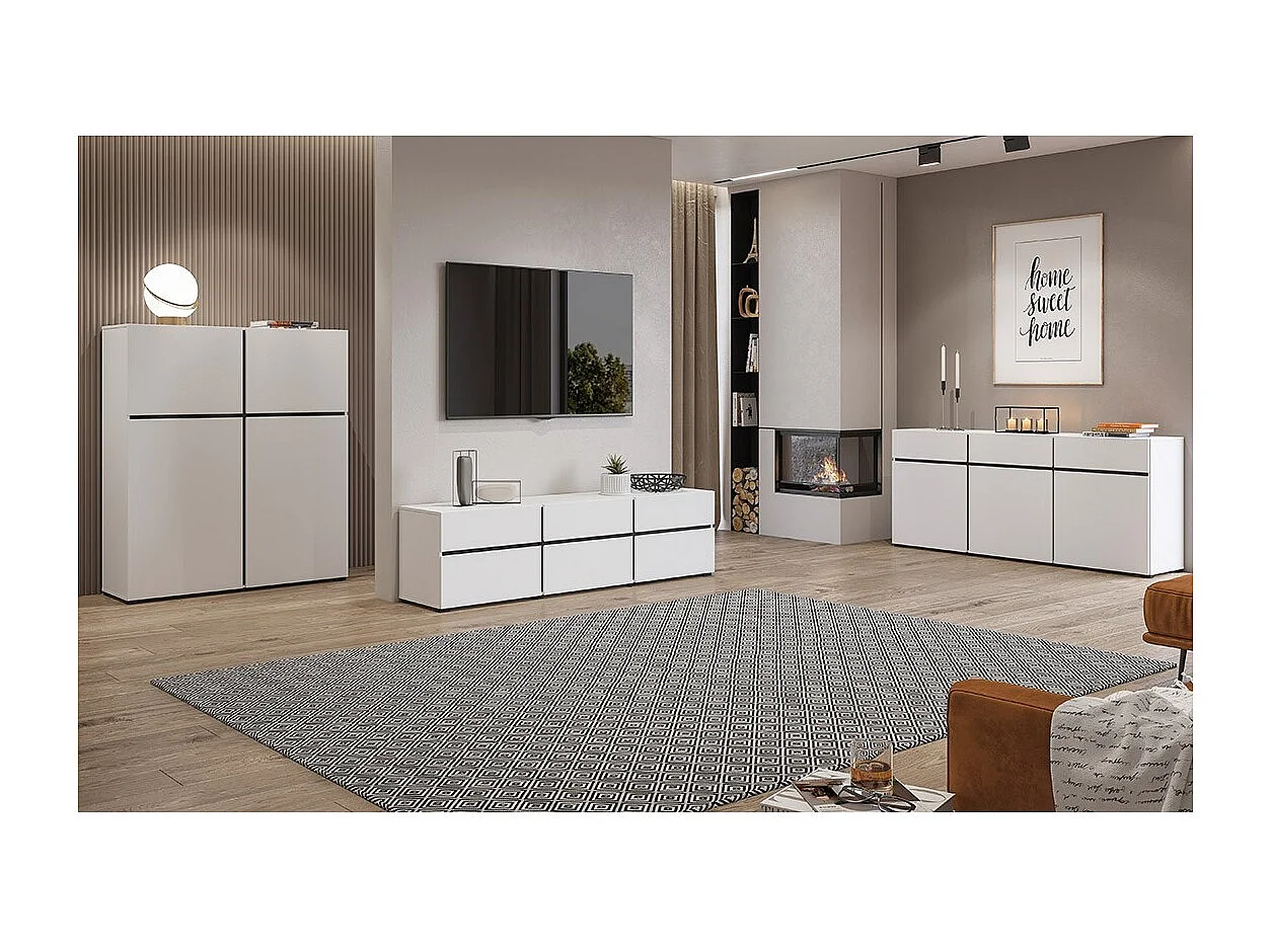 Buffet haut coloris blanc et noir L120xH140xP40 collection HAVANA. Bahut haut design avec 4 portes.