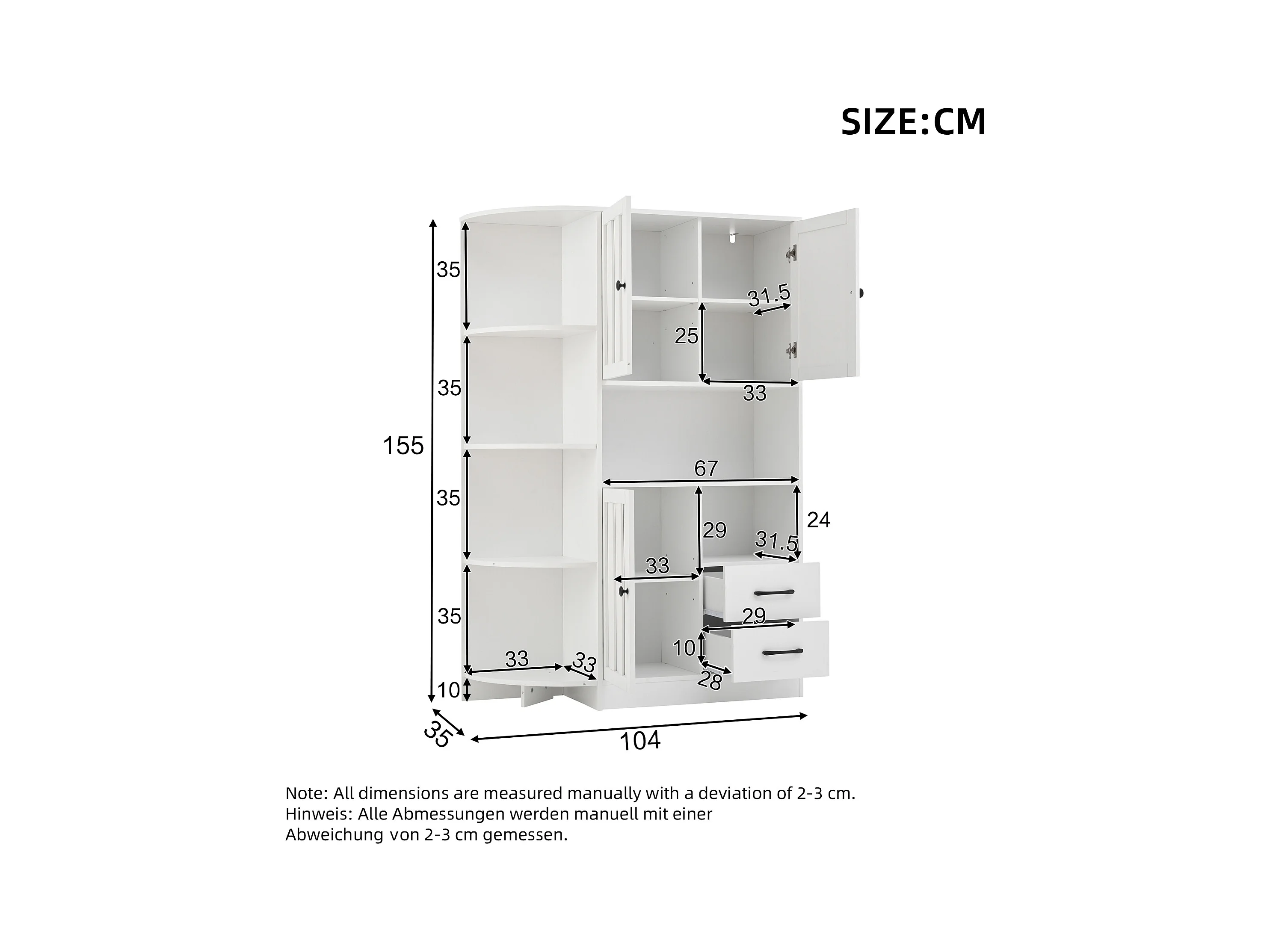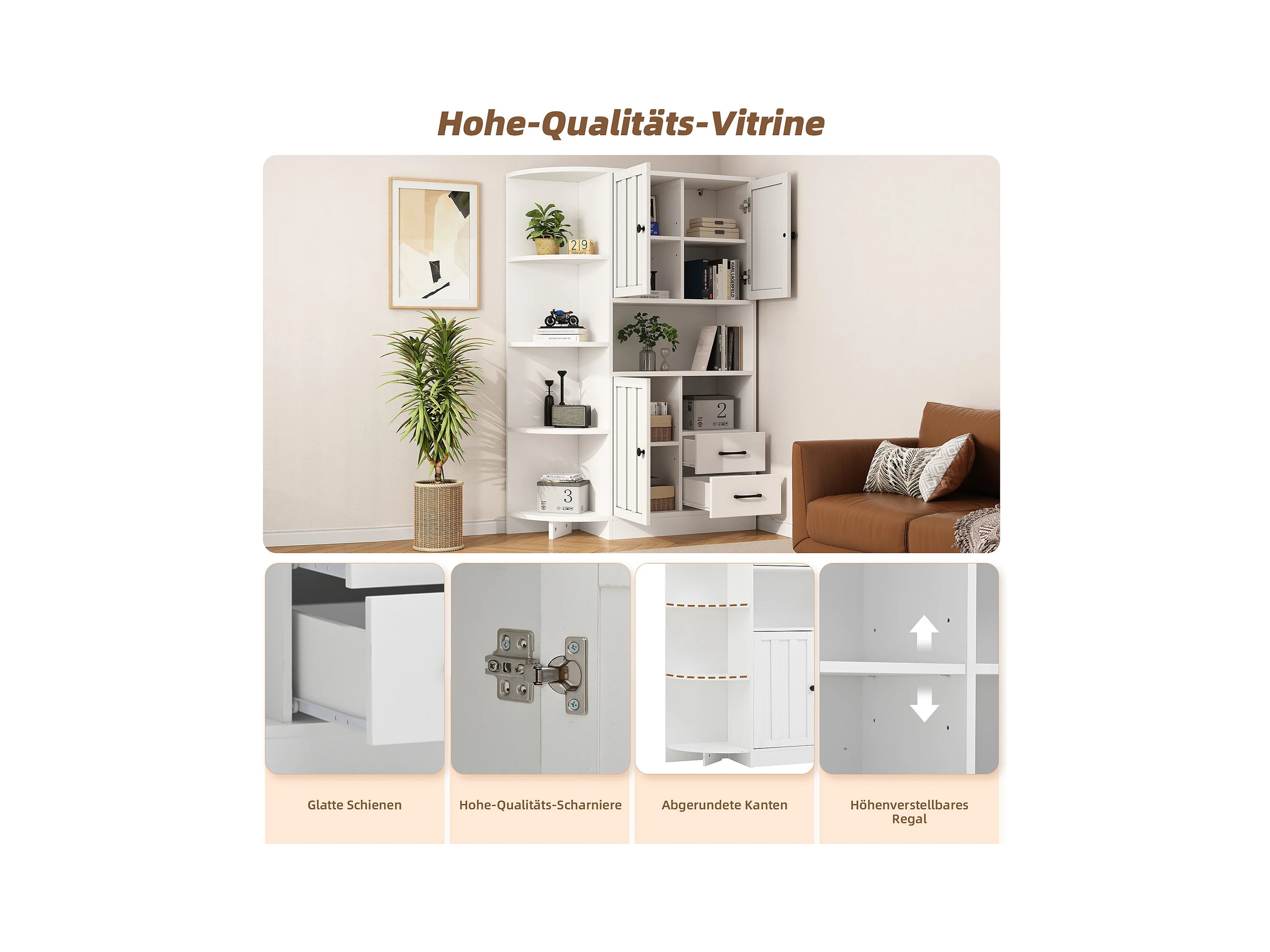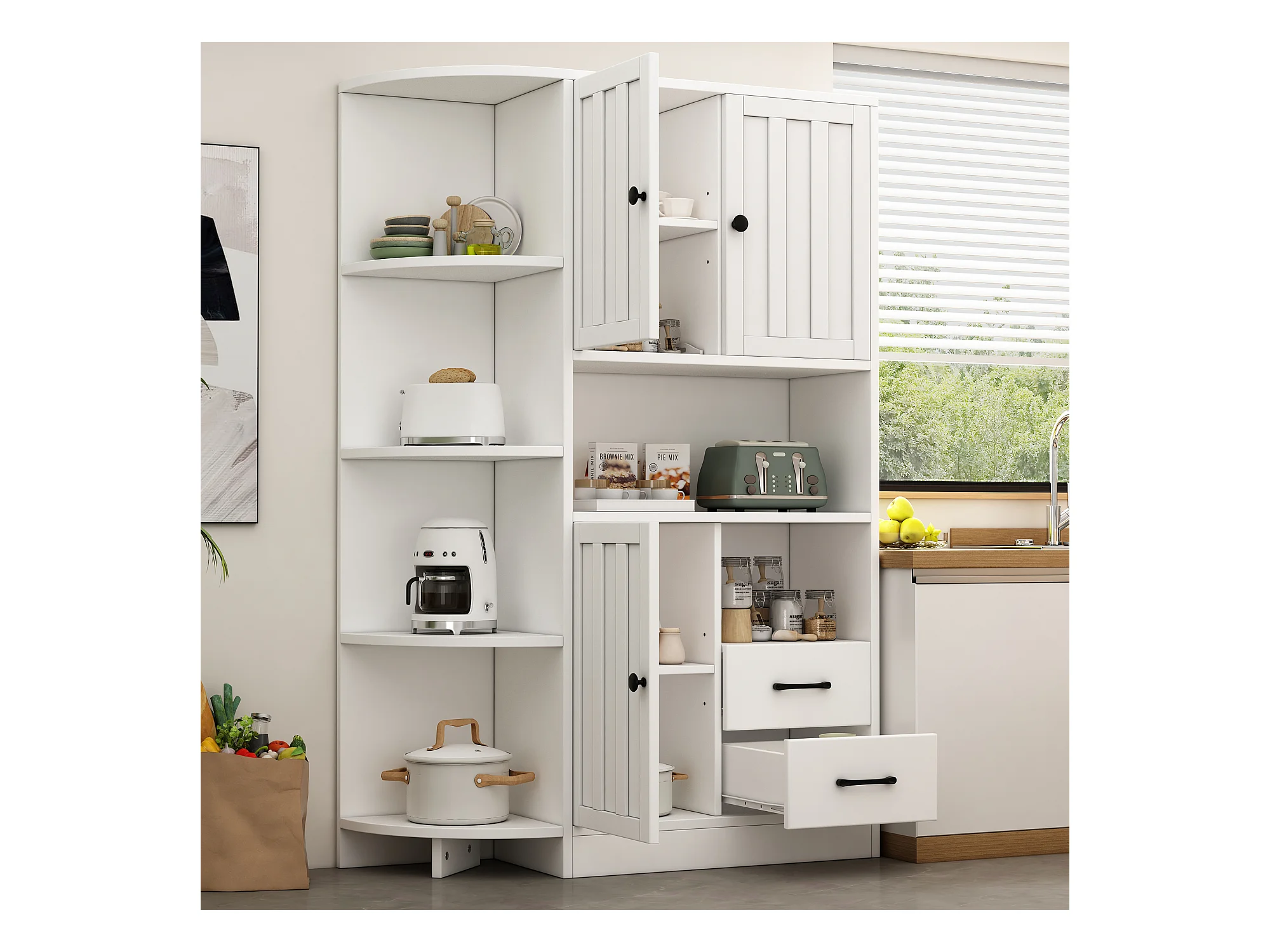 Buffet haut d'angle - 104 x 35 x 155 cm - avec 3 armoires + 2 tiroirs + étagères - aggloméré - blanc
