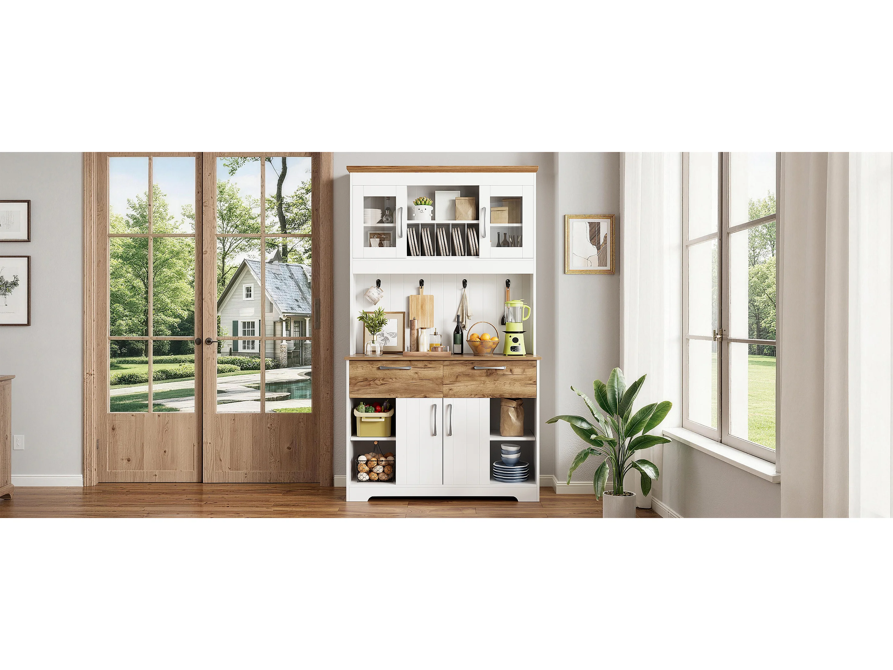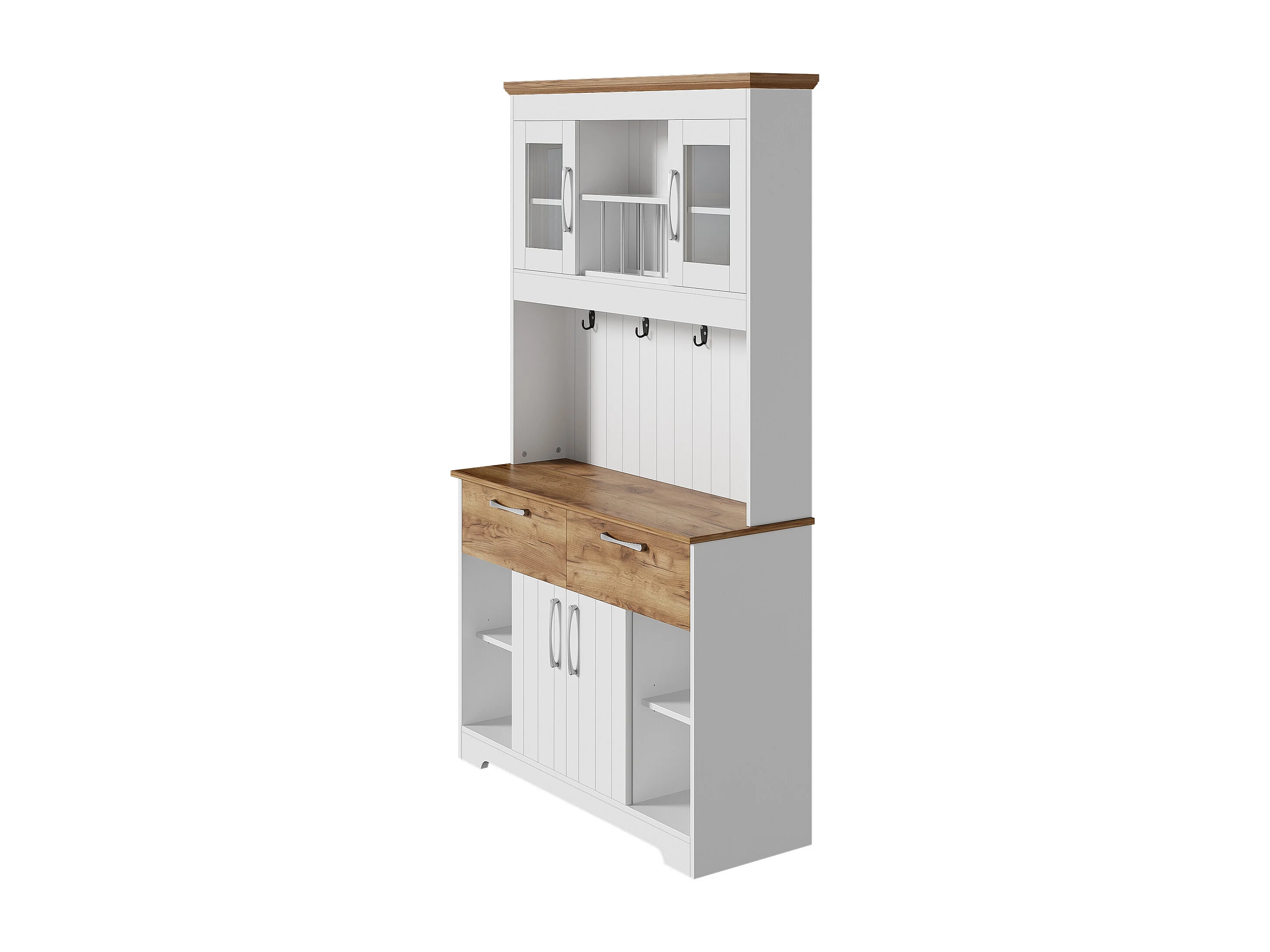 Buffet haut de cuisine - 106 x 39 x 176.5 cm - avec 4 portes + 2 tiroirs + tringle à crochets - aggloméré - blanc