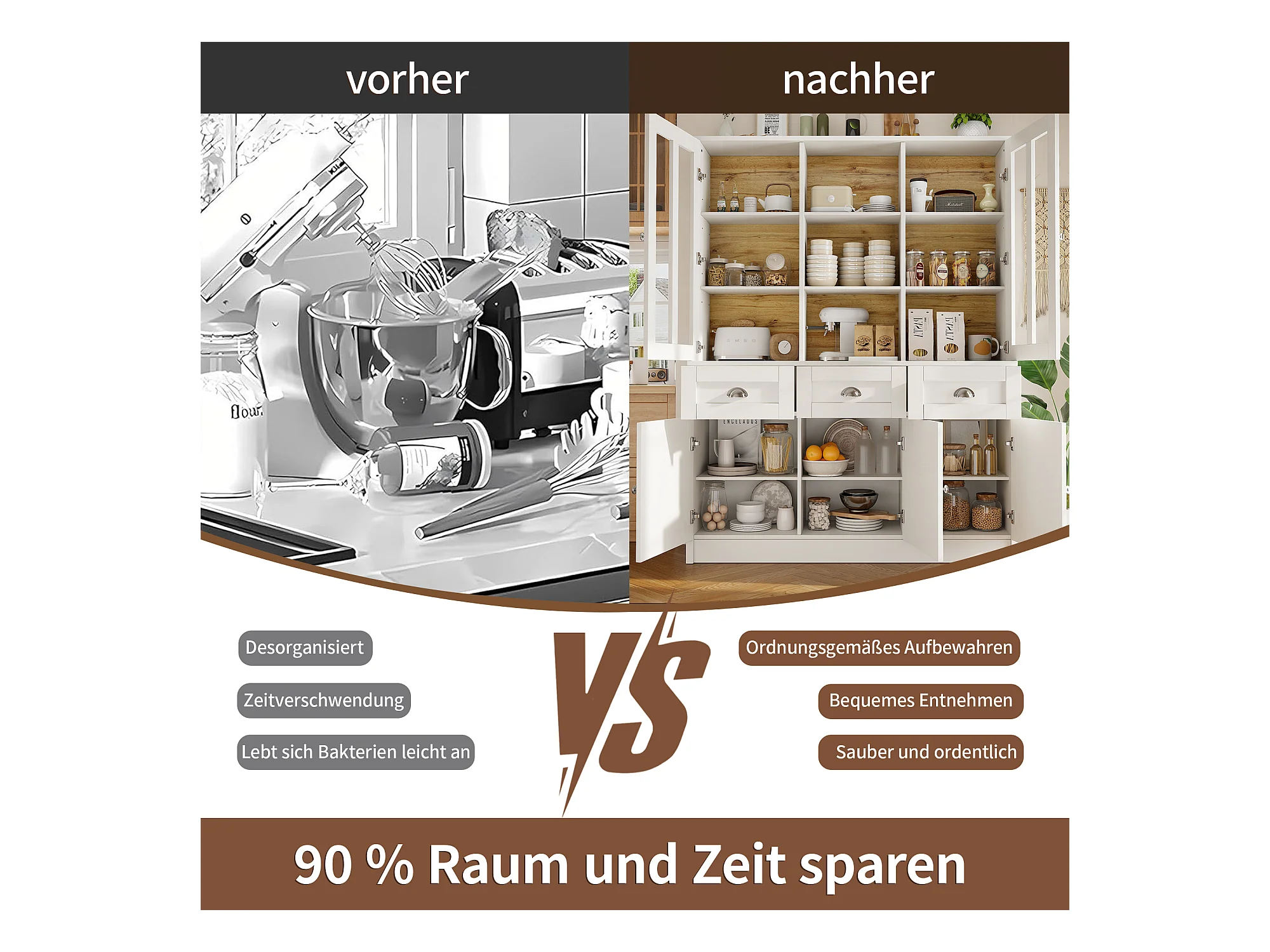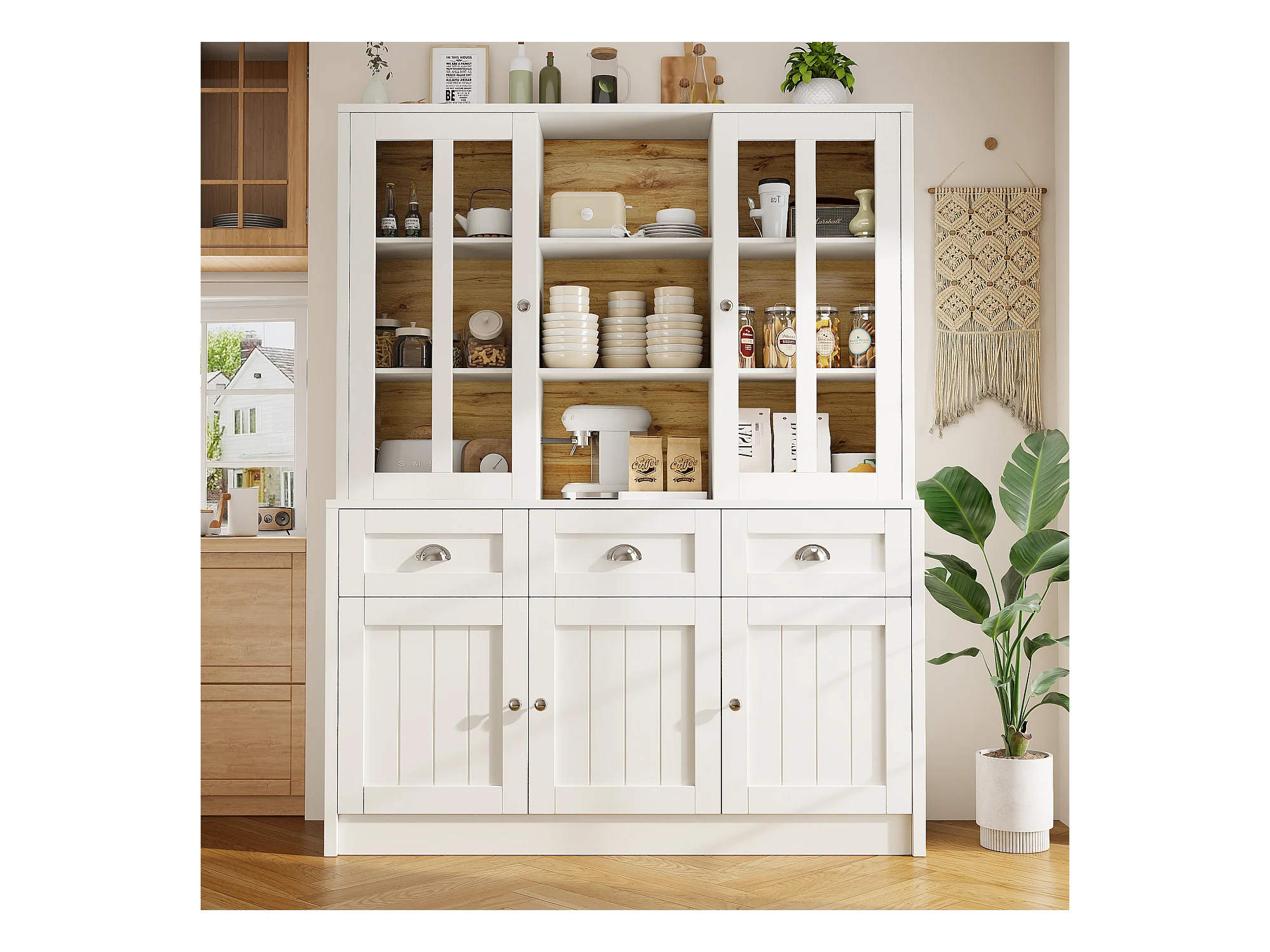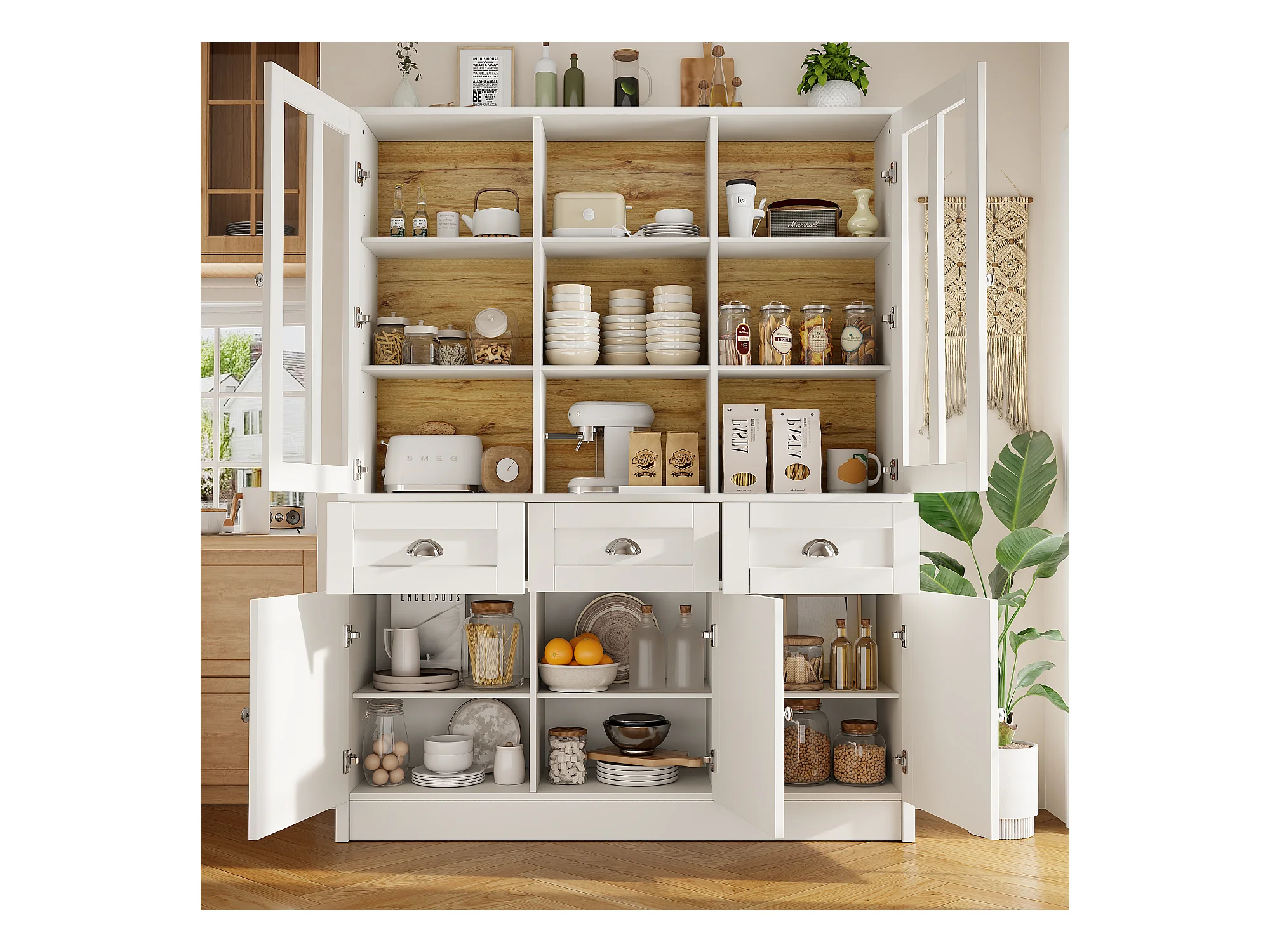 Buffet haut de cuisine - 140 x 38.5 x 175 cm - avec 3 tiroirs + 5 portes - MDF - blanc