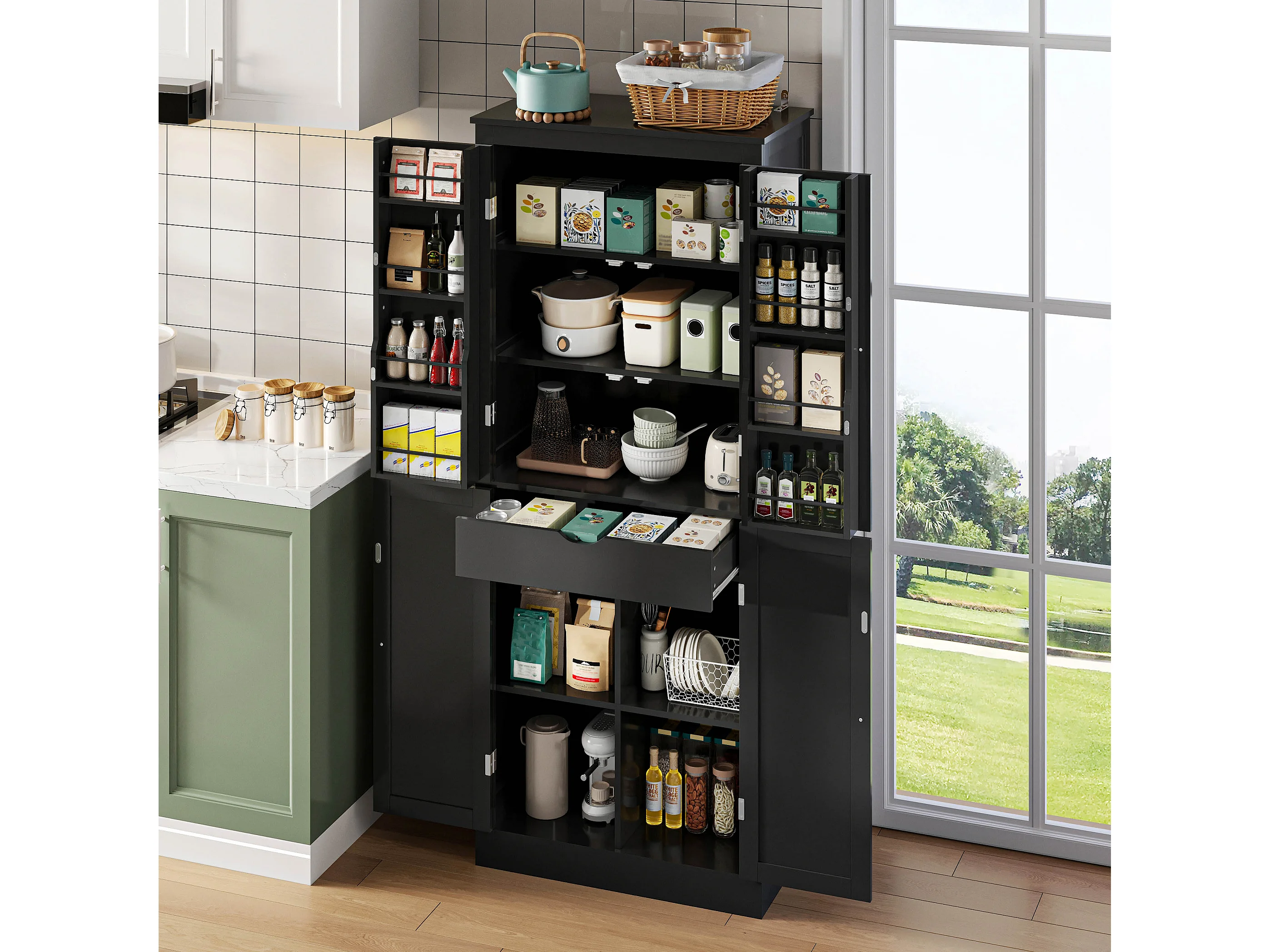 Buffet haut de cuisine - 182 x 40 x 75 cm - avec 4 portes + compartiments de rangement + tiroir - MDF - noir
