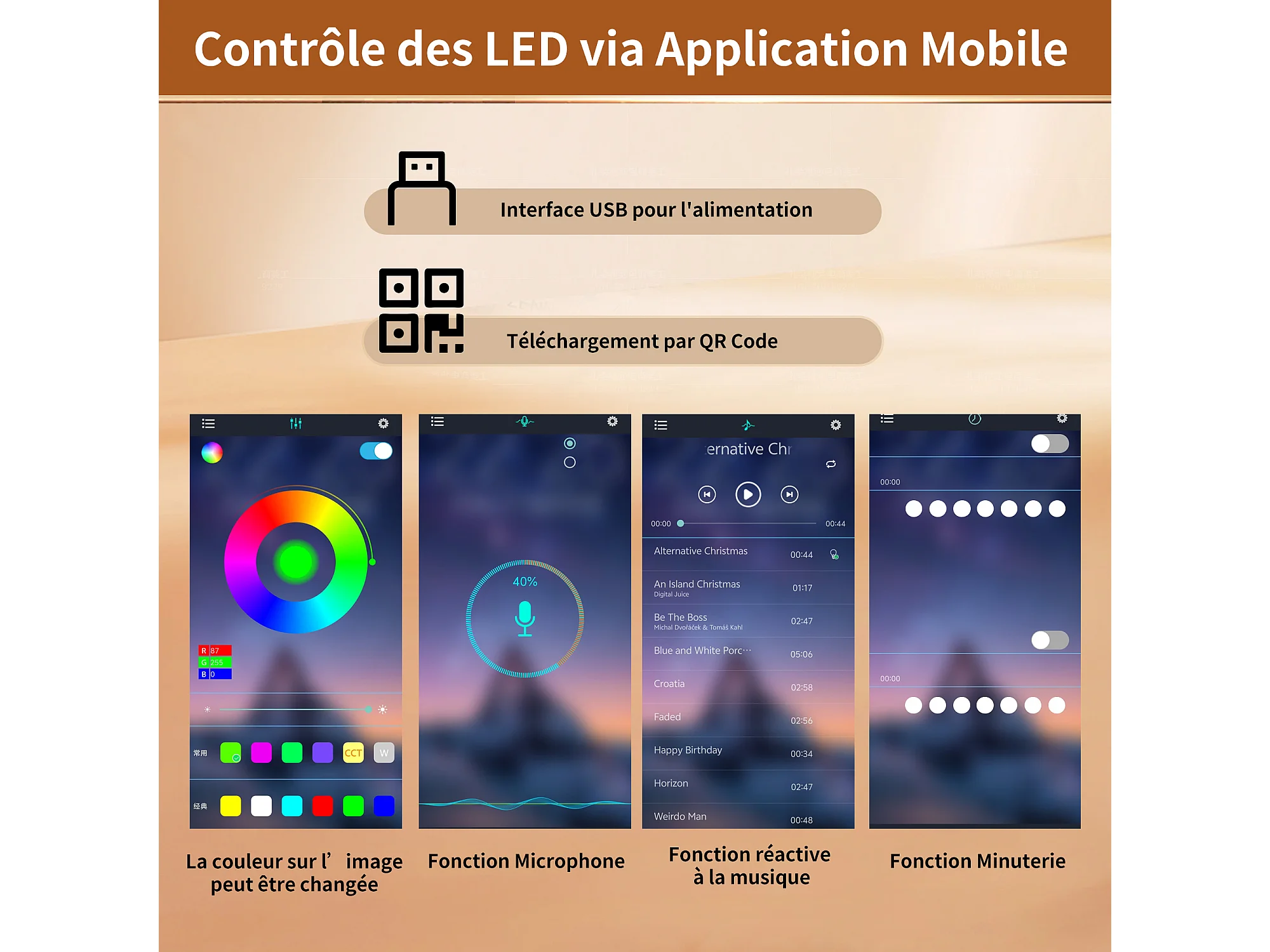Buffet haut de cuisine avec 4 portes + 3 tiroirs + étagère + Leds - 106 x 40 x 179.5 cm - MDF - noir