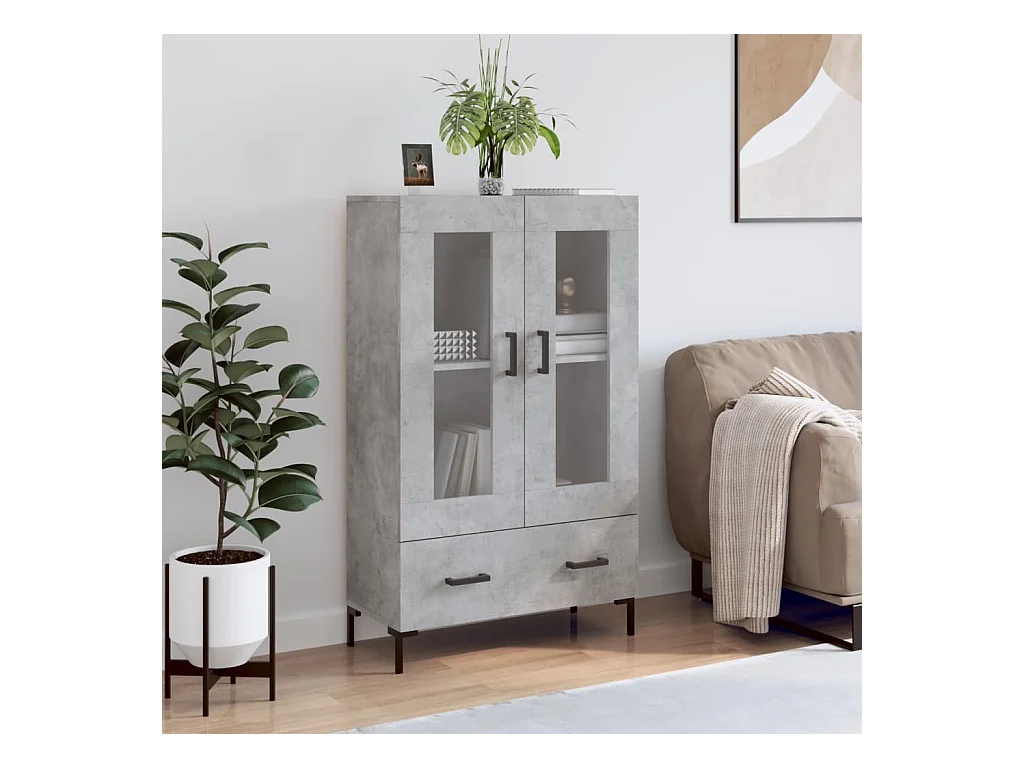 Buffet haut gris béton 69,5x31x115 cm bois d'ingénierie