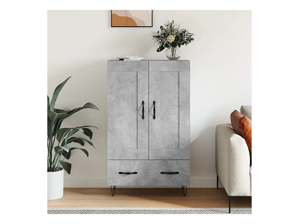 Buffet haut gris béton 69,5x31x115 cm bois d'ingénierie QWE23769