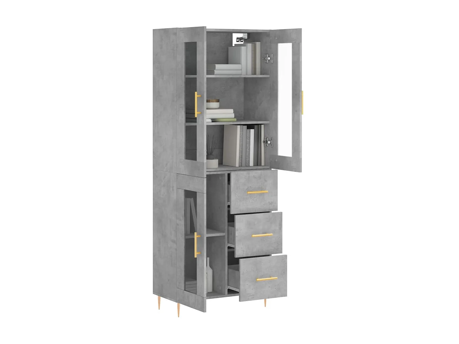 Buffet haut Gris béton 69,5x34x180 cm Bois d'ingénierie