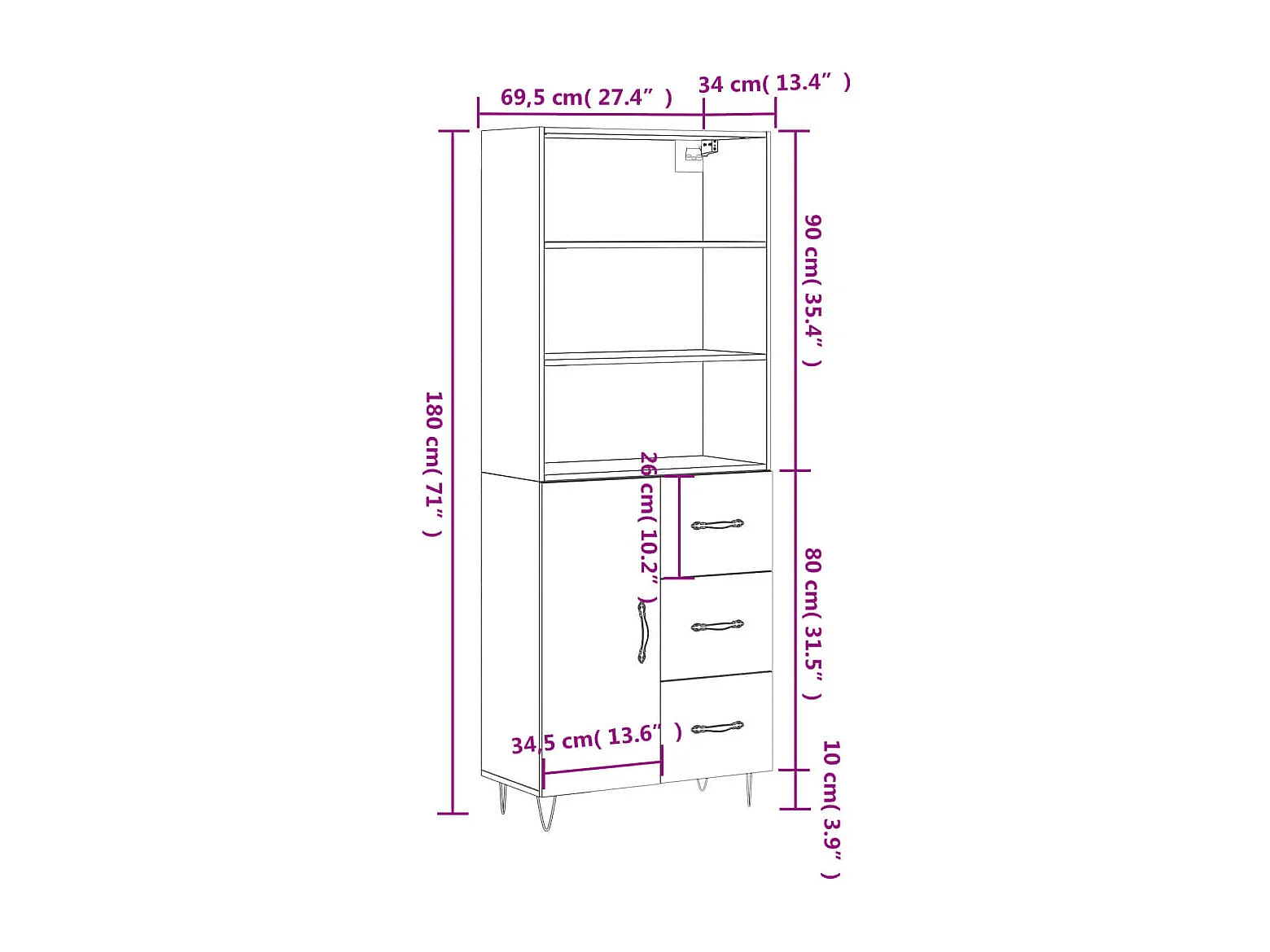 Buffet haut Gris béton 69,5x34x180 cm Bois d'ingénierie