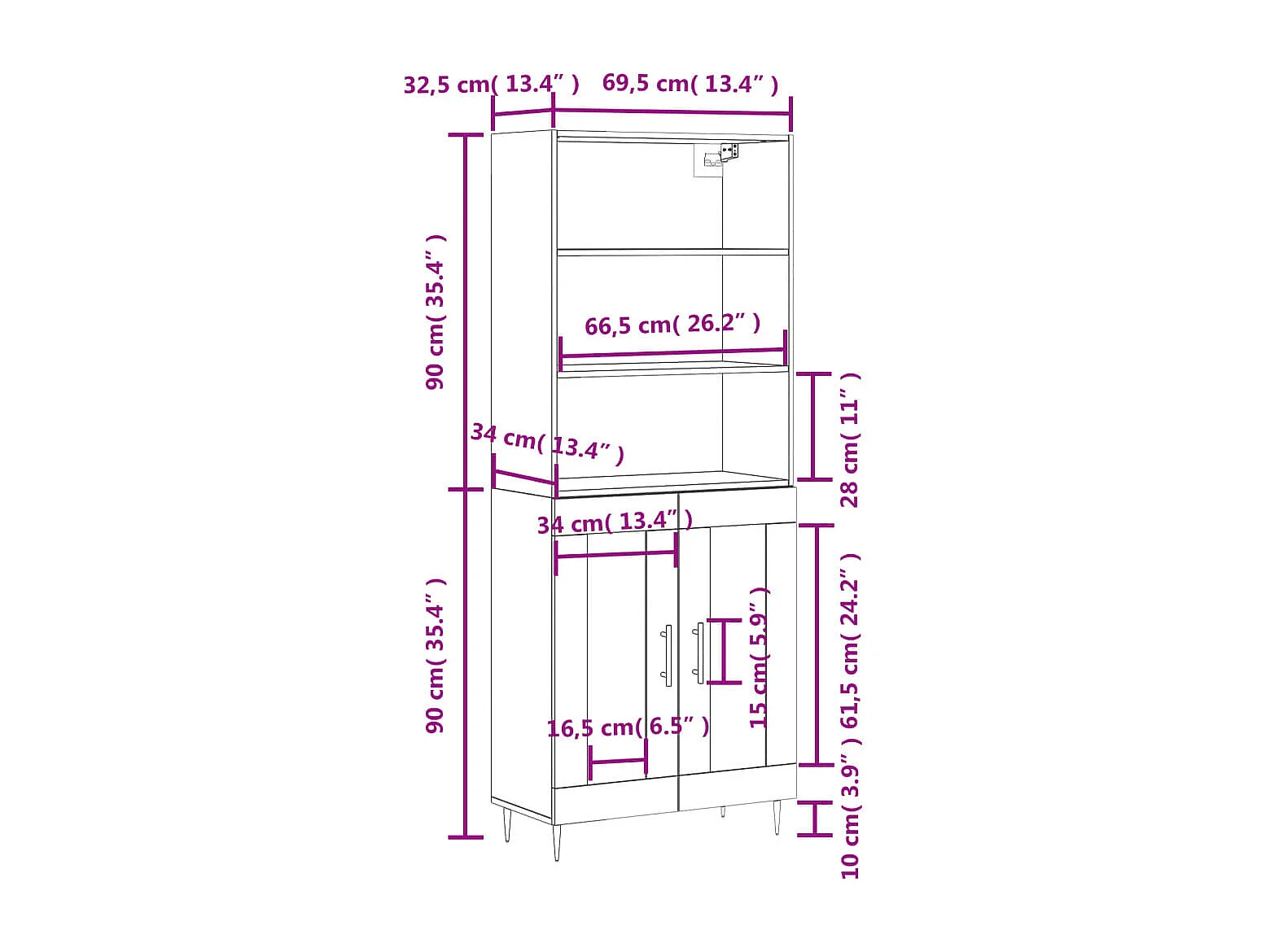 Buffet haut Gris béton 69,5x34x180 cm Bois d'ingénierie