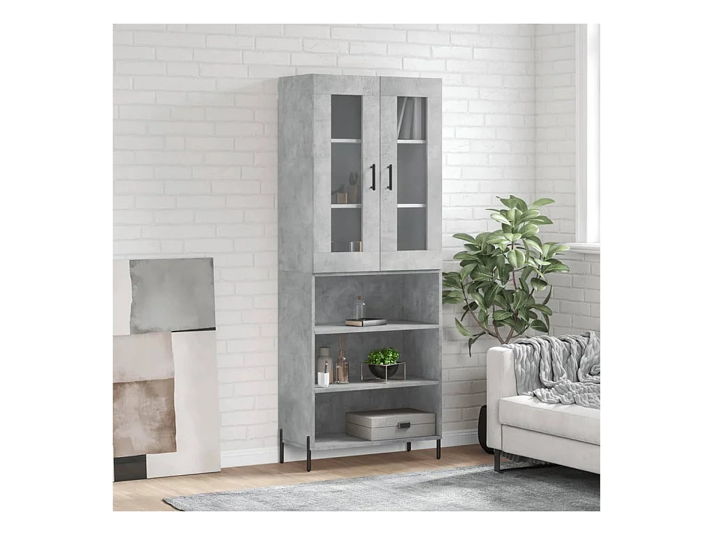 Buffet haut Gris béton 69,5x34x180 cm Bois d'ingénierie