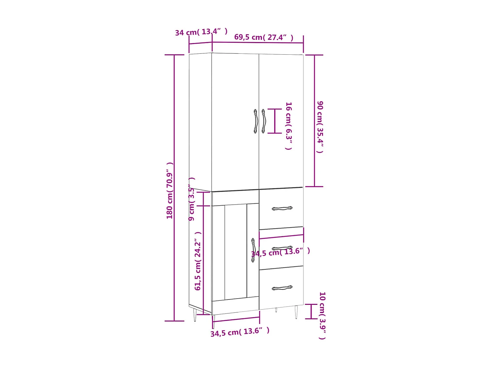Buffet haut Gris béton 69,5x34x180 cm Bois d'ingénierie