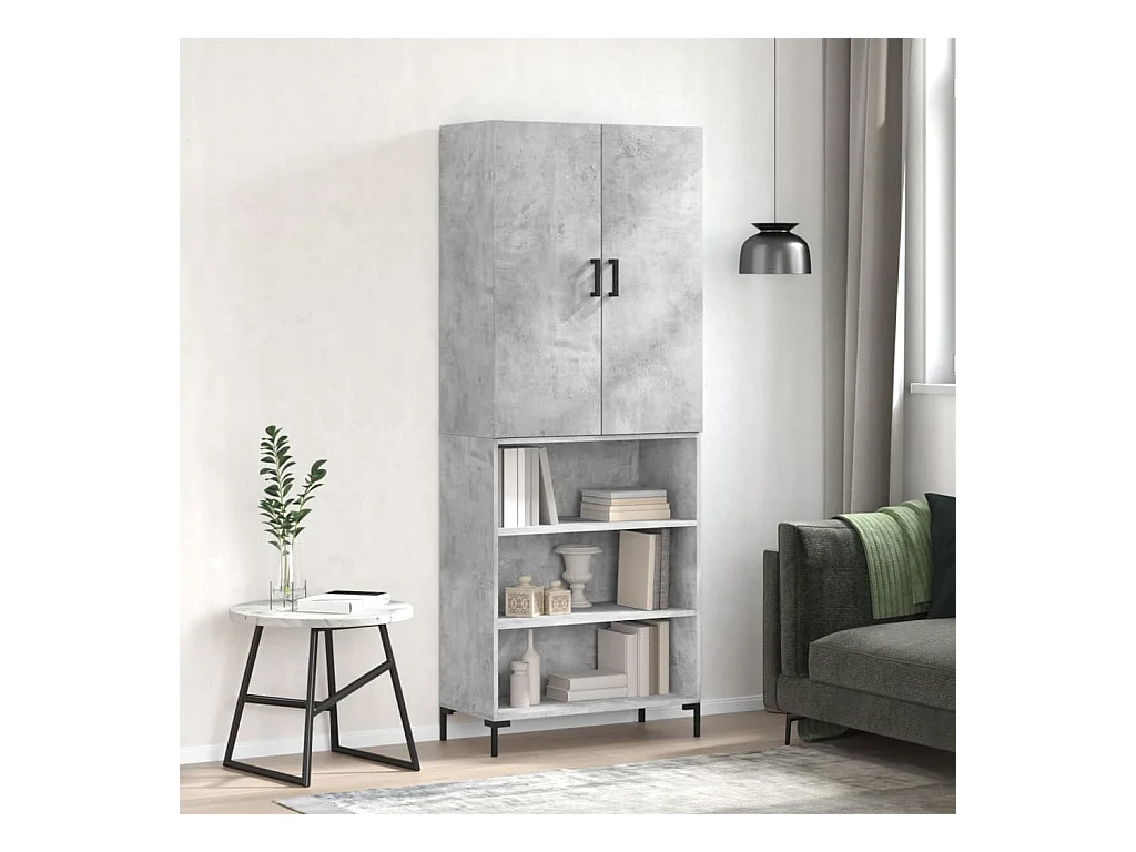 Buffet haut Gris béton 69,5x34x180 cm Bois d'ingénierie QWE72980