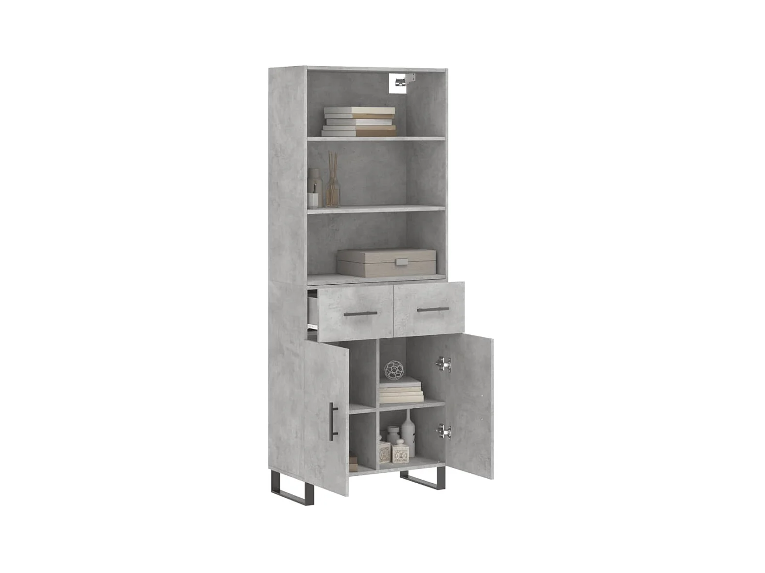 Buffet haut Gris béton 69,5x34x180 cm Bois d'ingénierie QWE20633