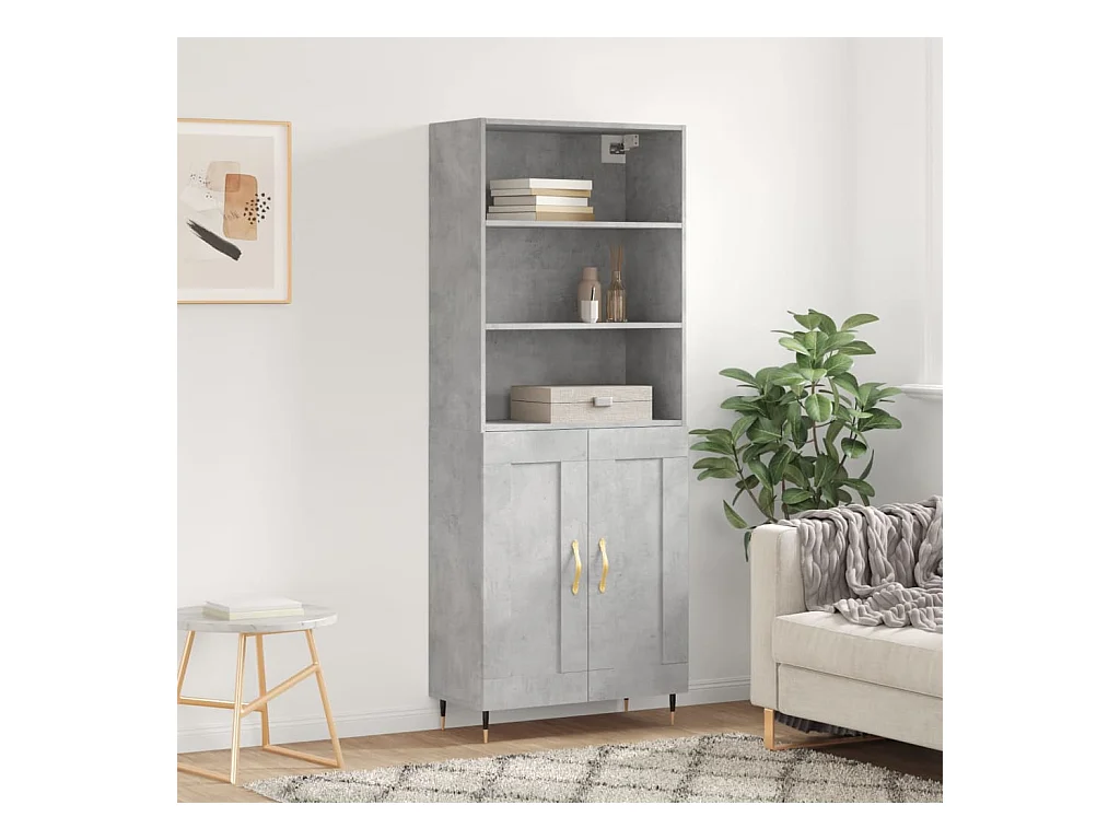Buffet haut Gris béton 69,5x34x180 cm Bois d'ingénierie QWE69121