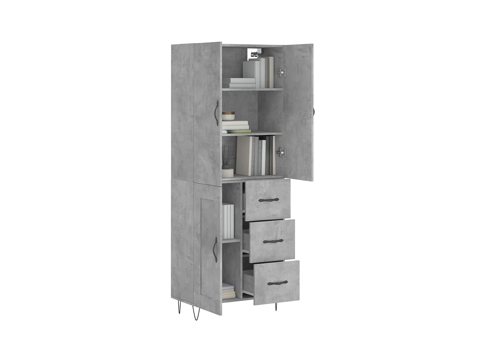 Buffet haut Gris béton 69,5x34x180 cm Bois d'ingénierie QWE79470