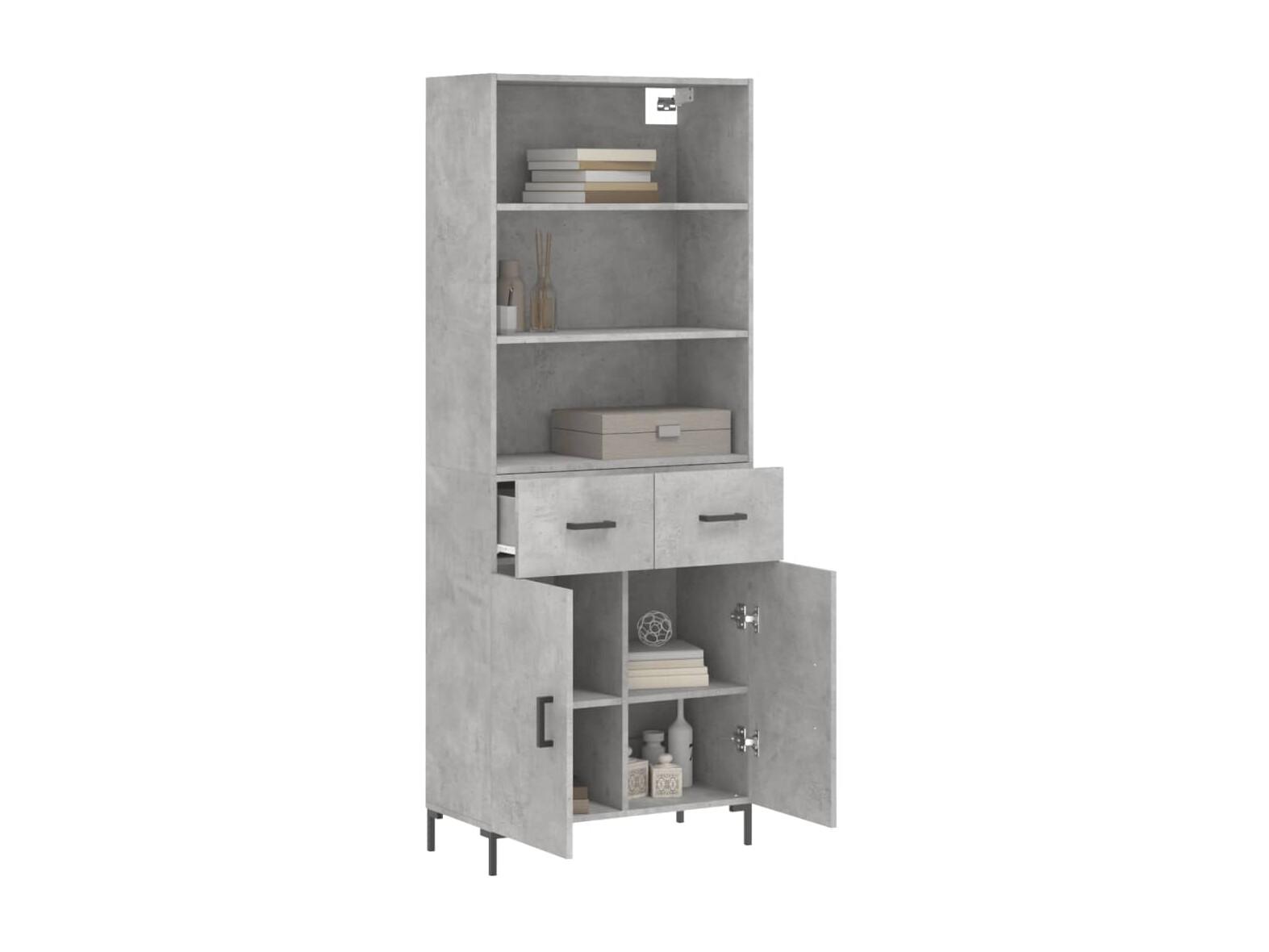 Buffet haut Gris béton 69,5x34x180 cm Bois d'ingénierie QWE90250