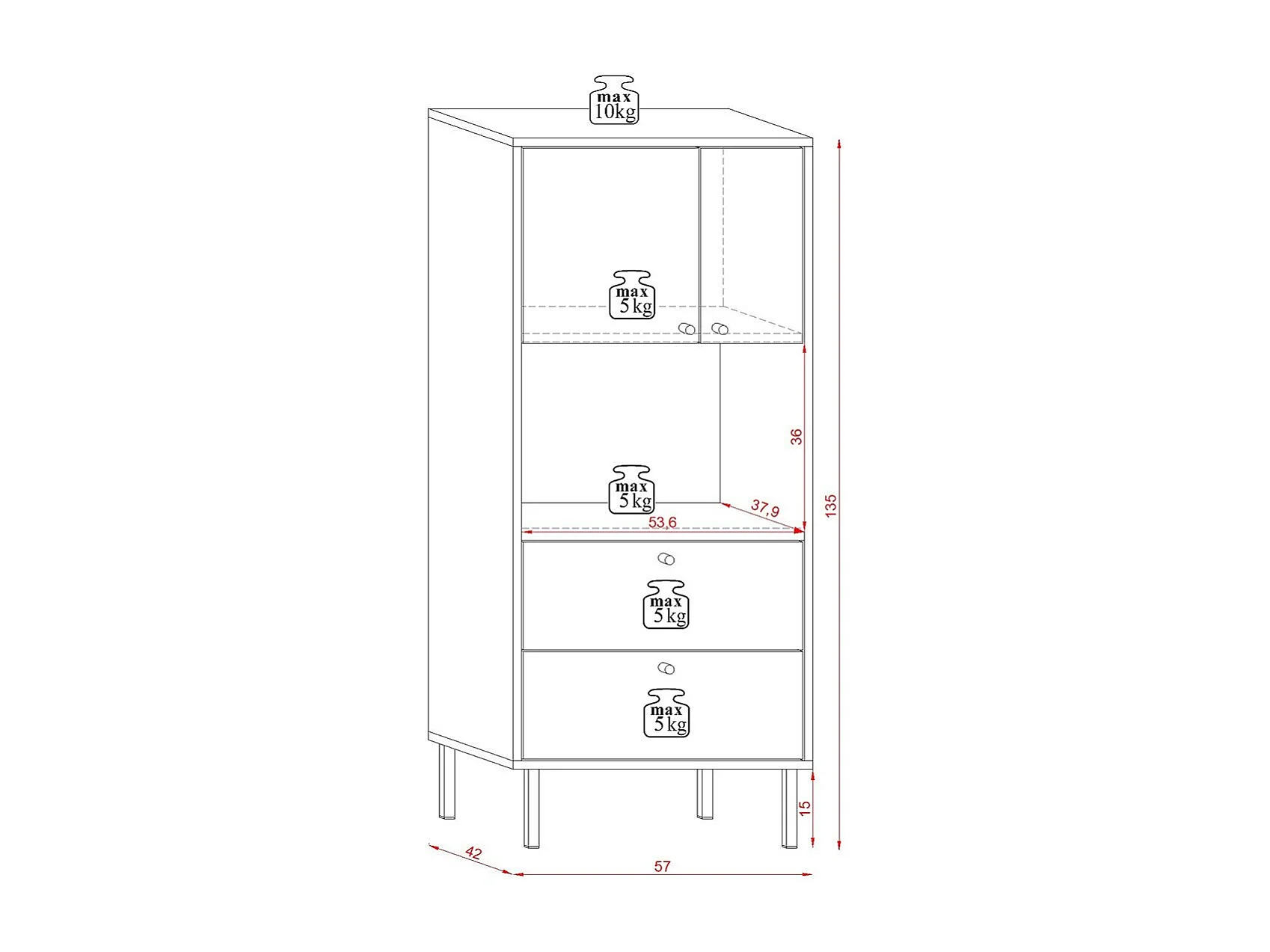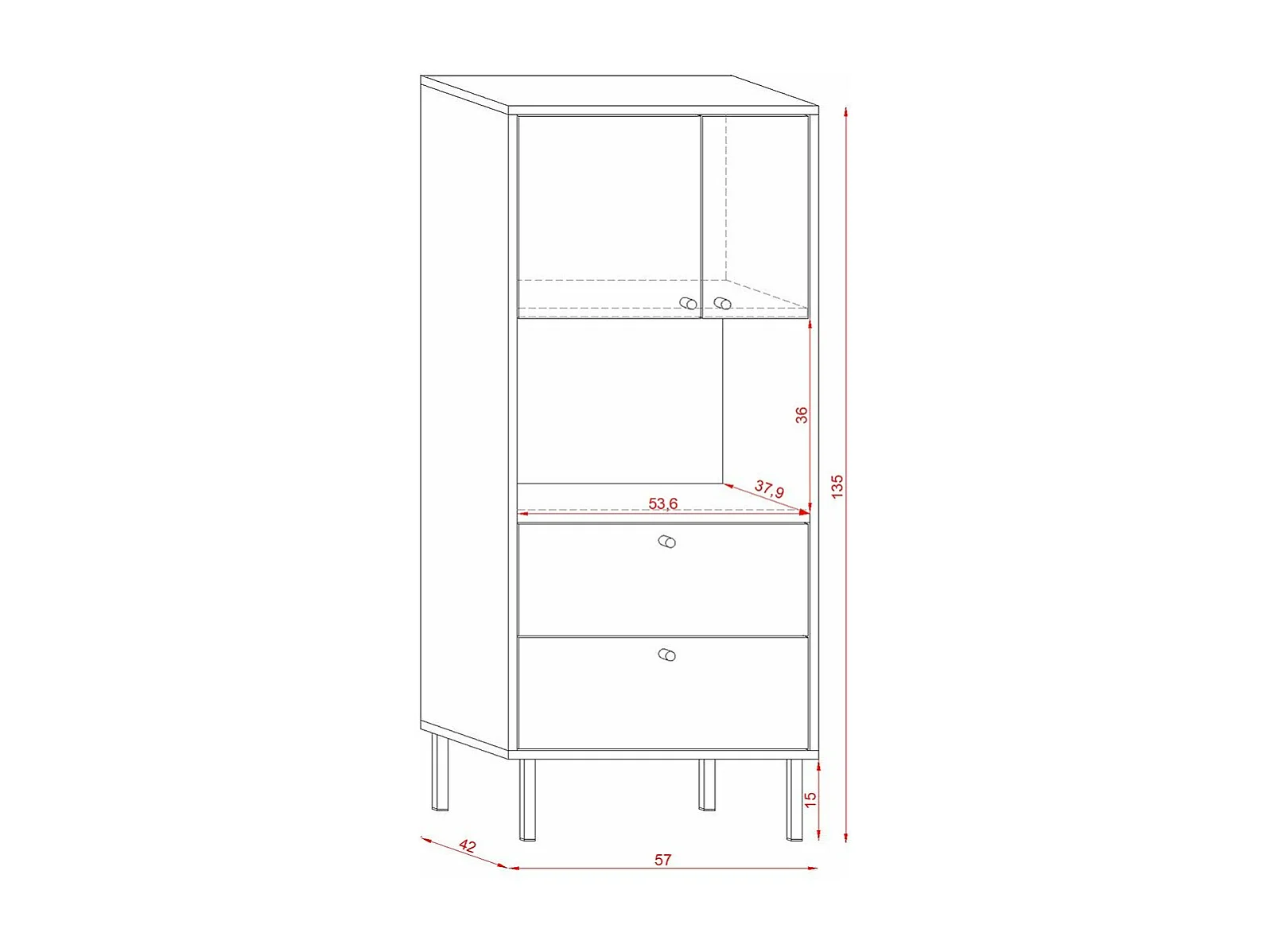 Buffet Haut Industriel 2 Portes et 2 Tiroirs L57 x H135 cm - Bospe