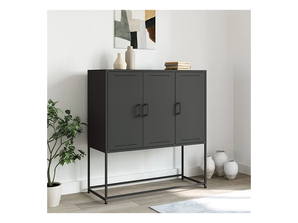 Buffet noir 100,5x39x107 cm acier laminé à froid