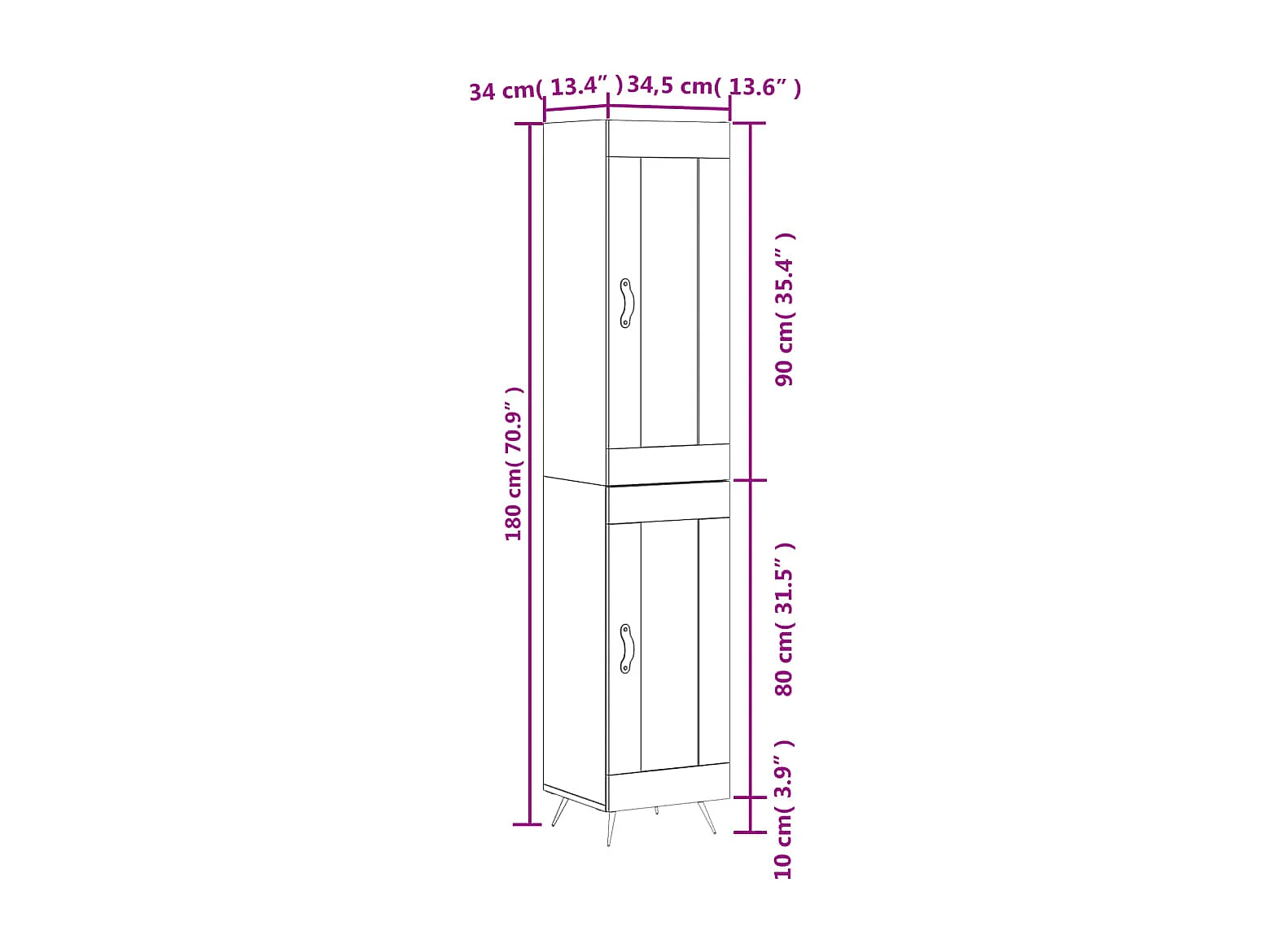 Buffet haut Noir 34,5x34x180 cm Bois d'ingénierie