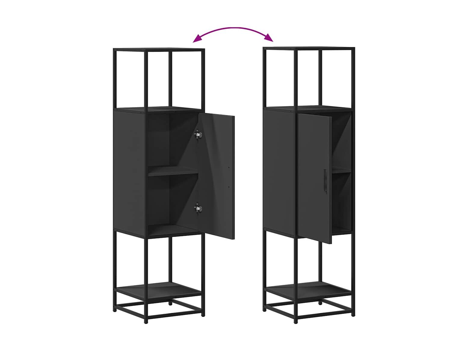 Buffet haut noir 35,5x35x139 cm bois d'ingénierie et métal