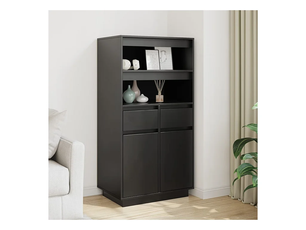 Buffet haut Noir 60x40x116,5 cm Bois massif de pin