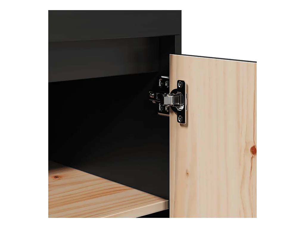 Buffet SENJA aspect rotin noir 90x40x112cm bois massif de pin