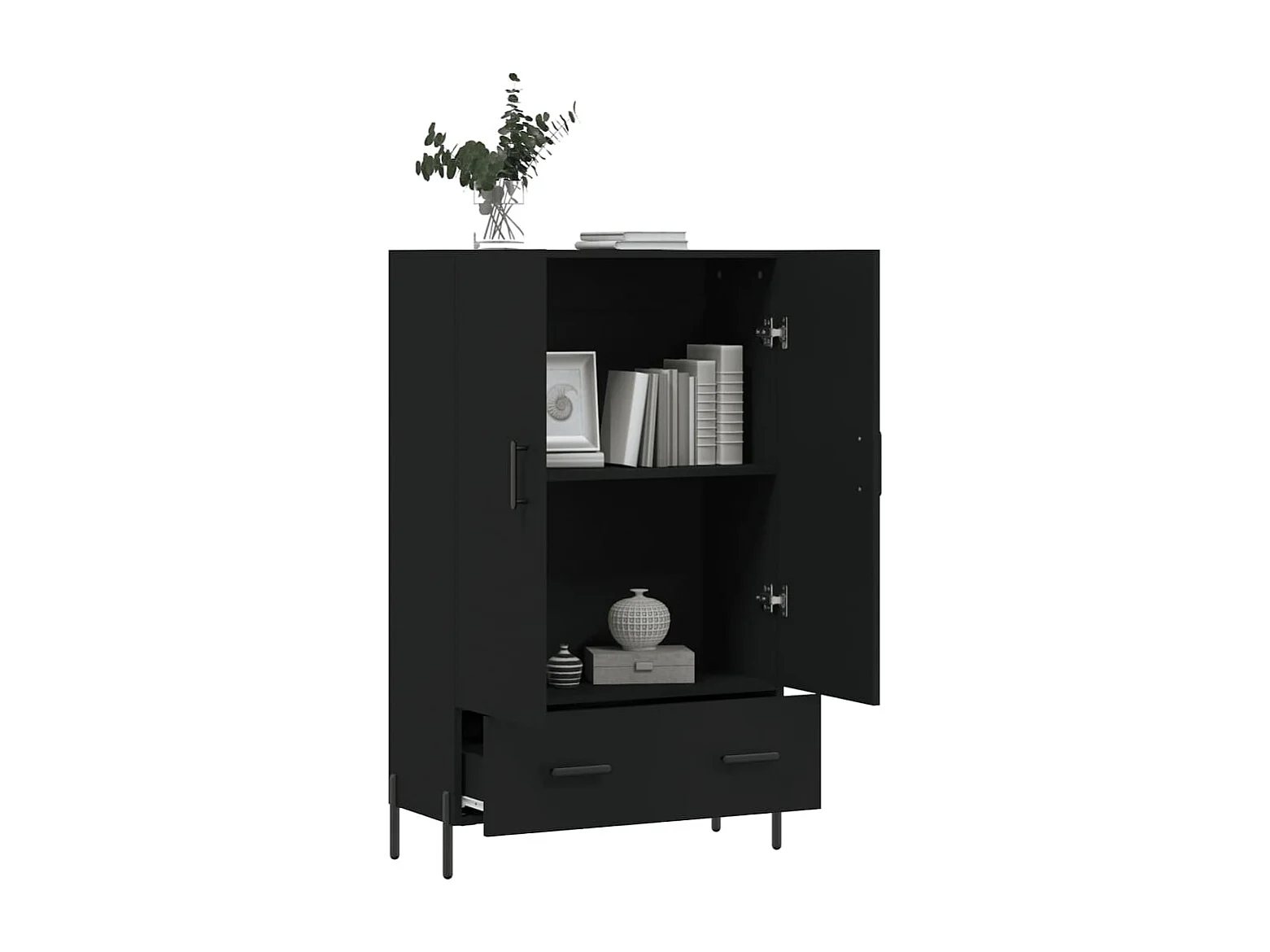 Buffet haut noir 69,5x31x115 cm bois d'ingénierie