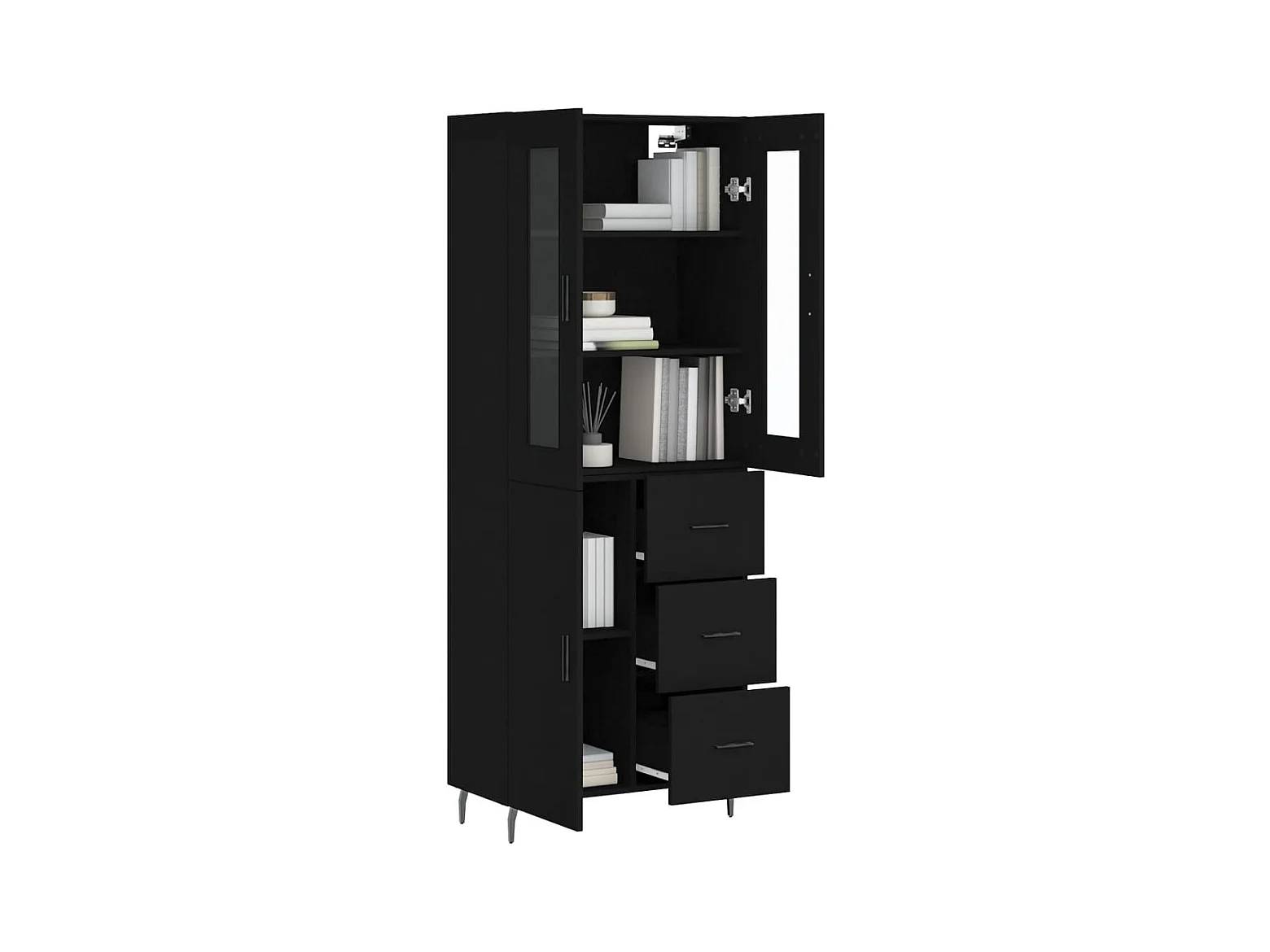 Buffet haut Noir 69,5x34x180 cm Bois d'ingénierie