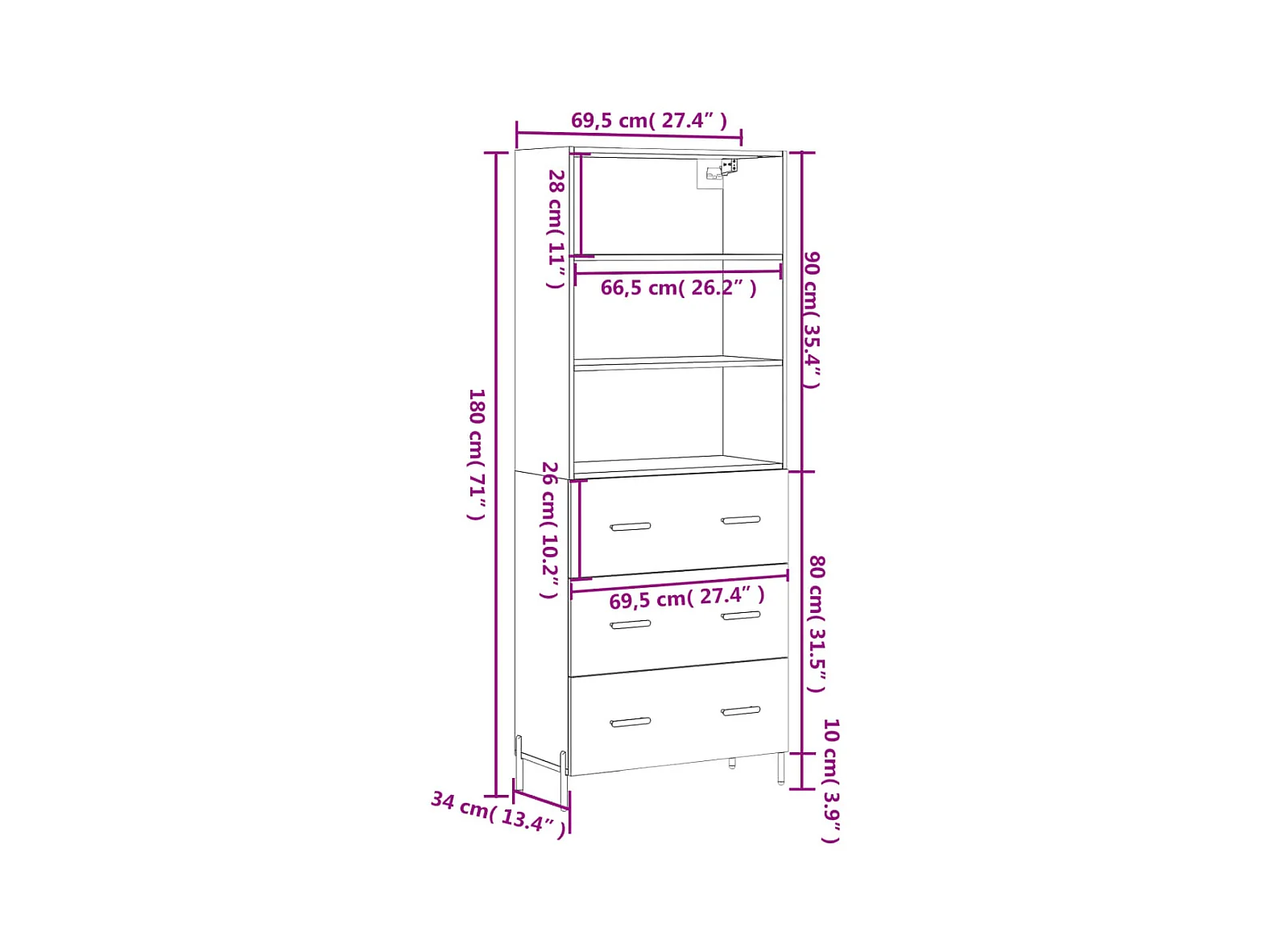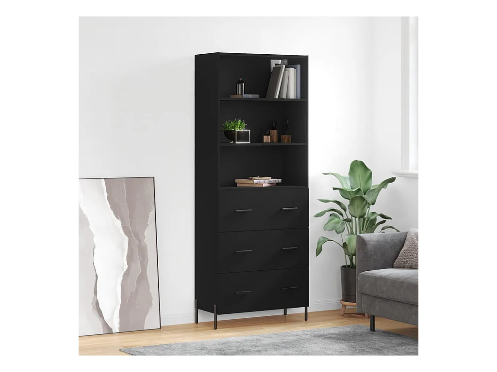Buffet haut Noir 69,5x34x180 cm Bois d'ingénierie