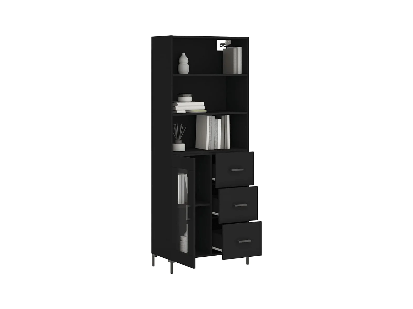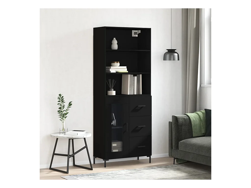 Buffet haut Noir 69,5x34x180 cm Bois d'ingénierie